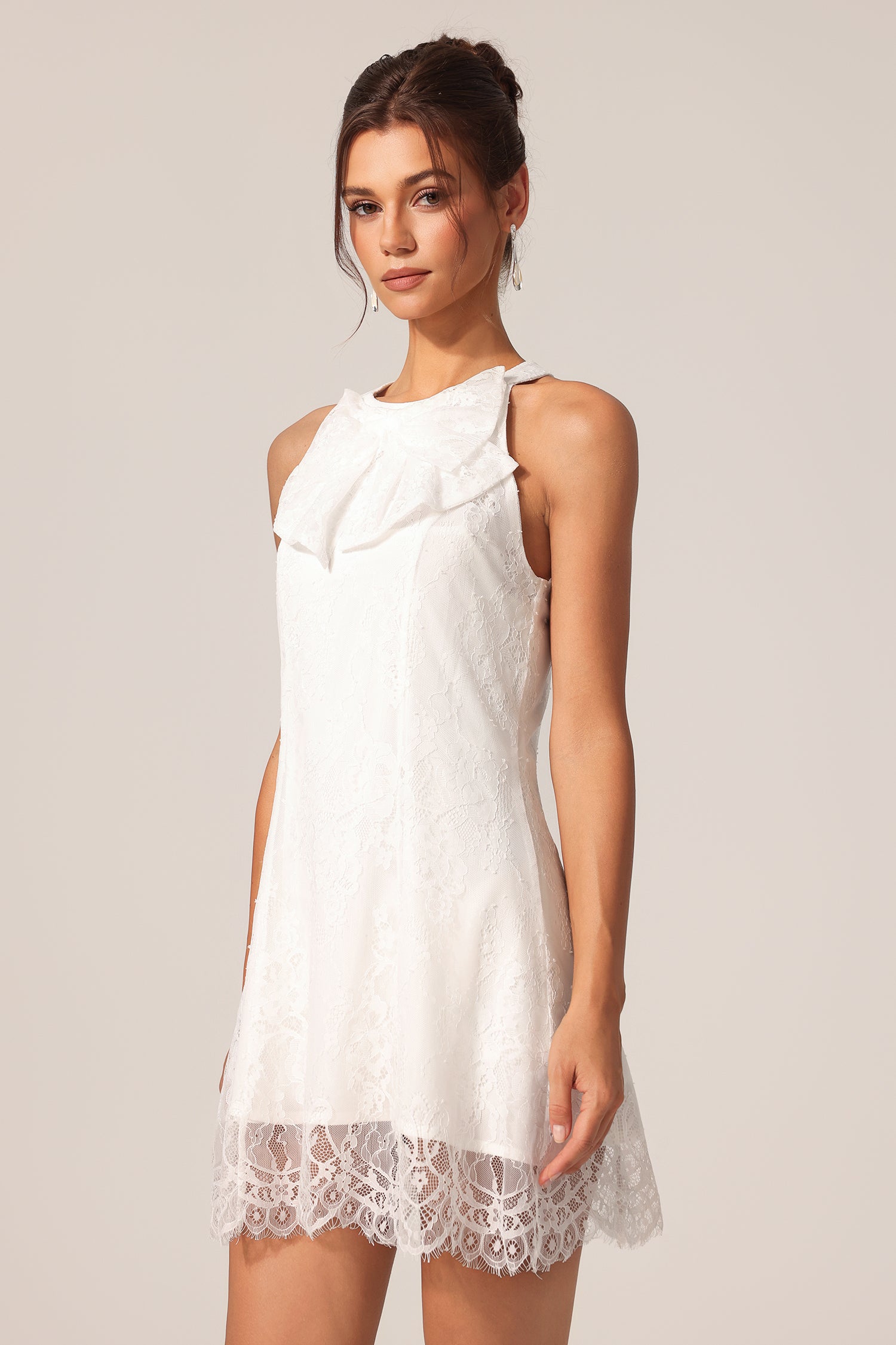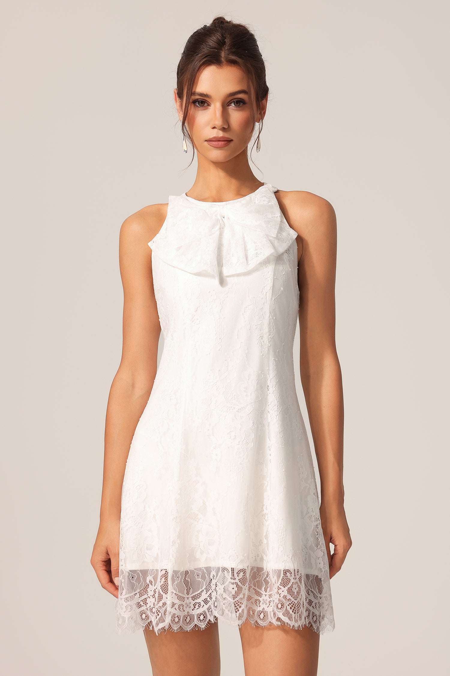 Diona Round Neck Sleeveless Flowers Lace Bowknot Mini Dress