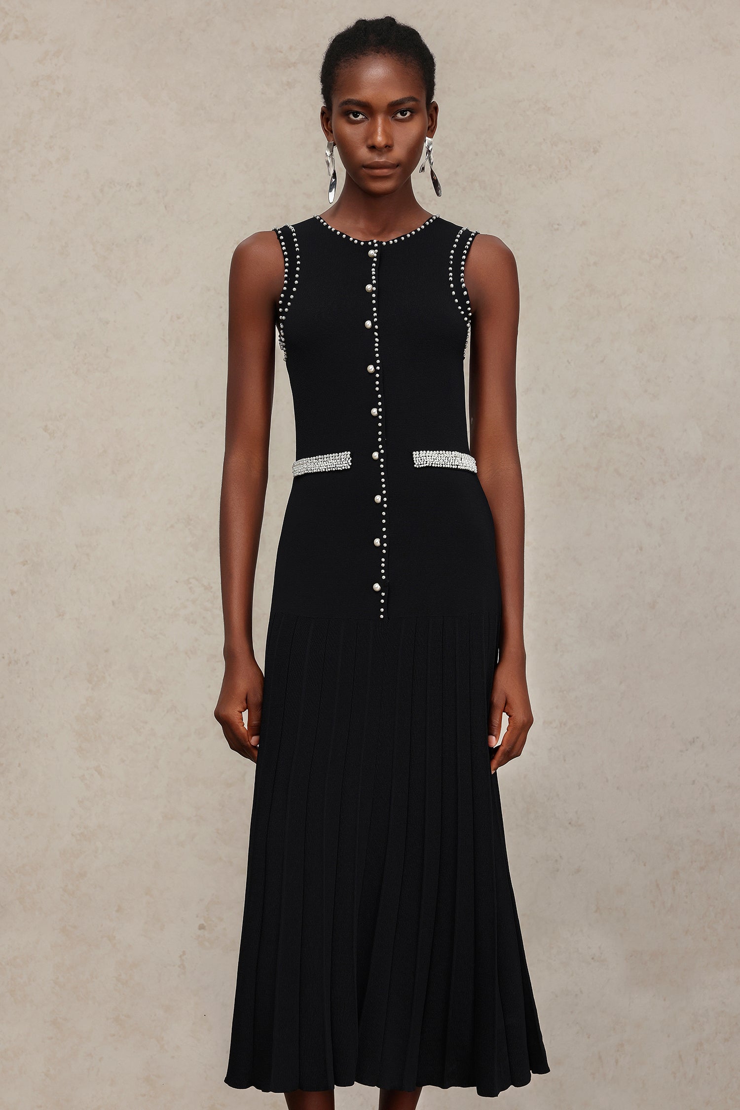 Evey Round Neck Sleeveless Pearl Maxi Dress