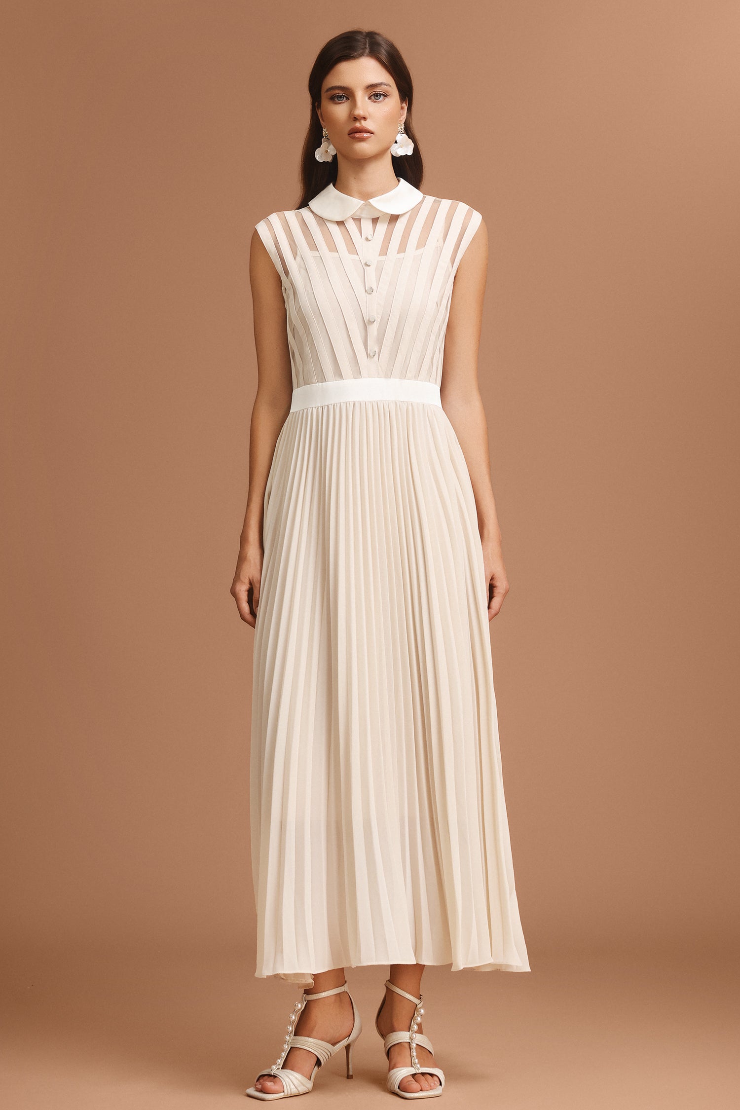 Gilda Round Neck Sleeveless Folds Maxi Dress