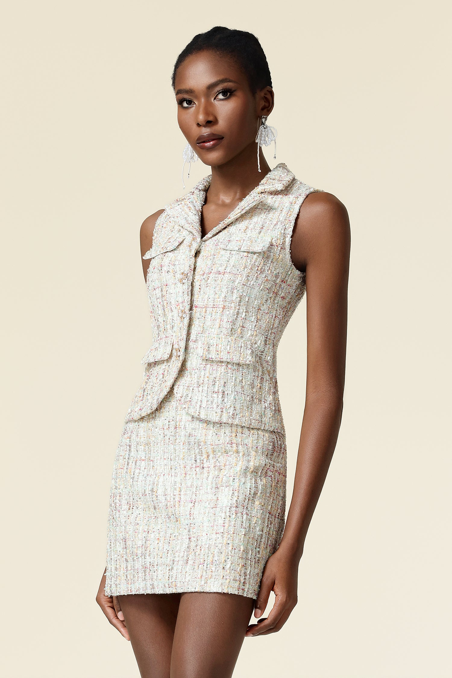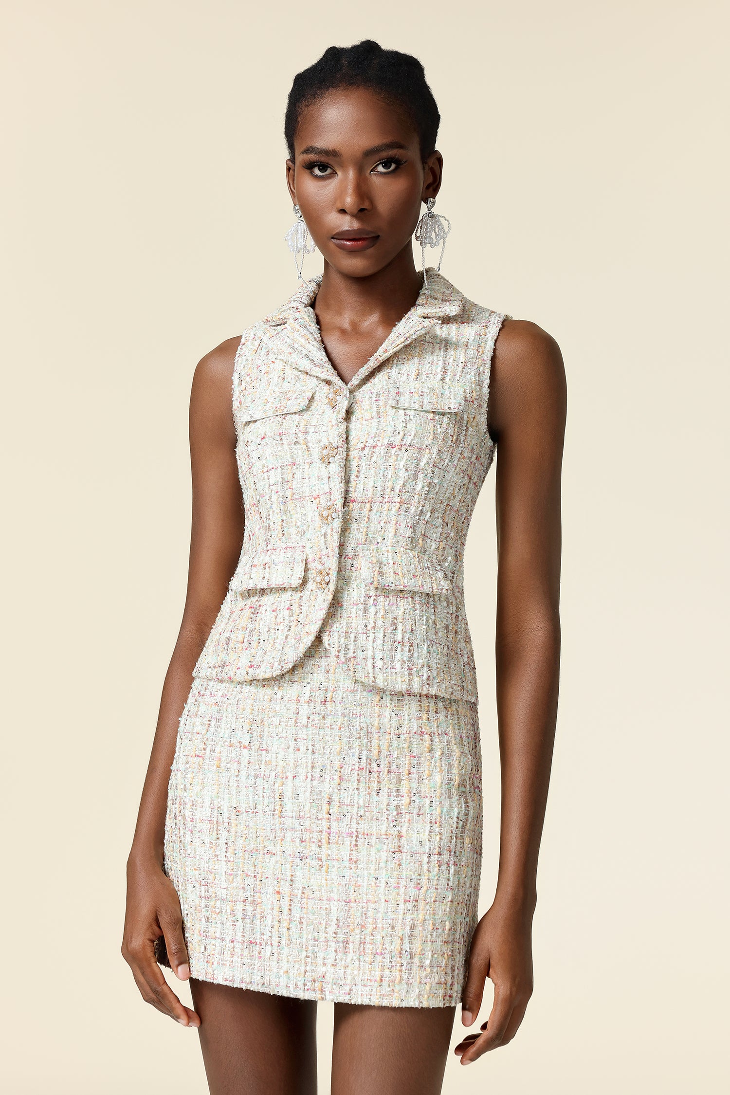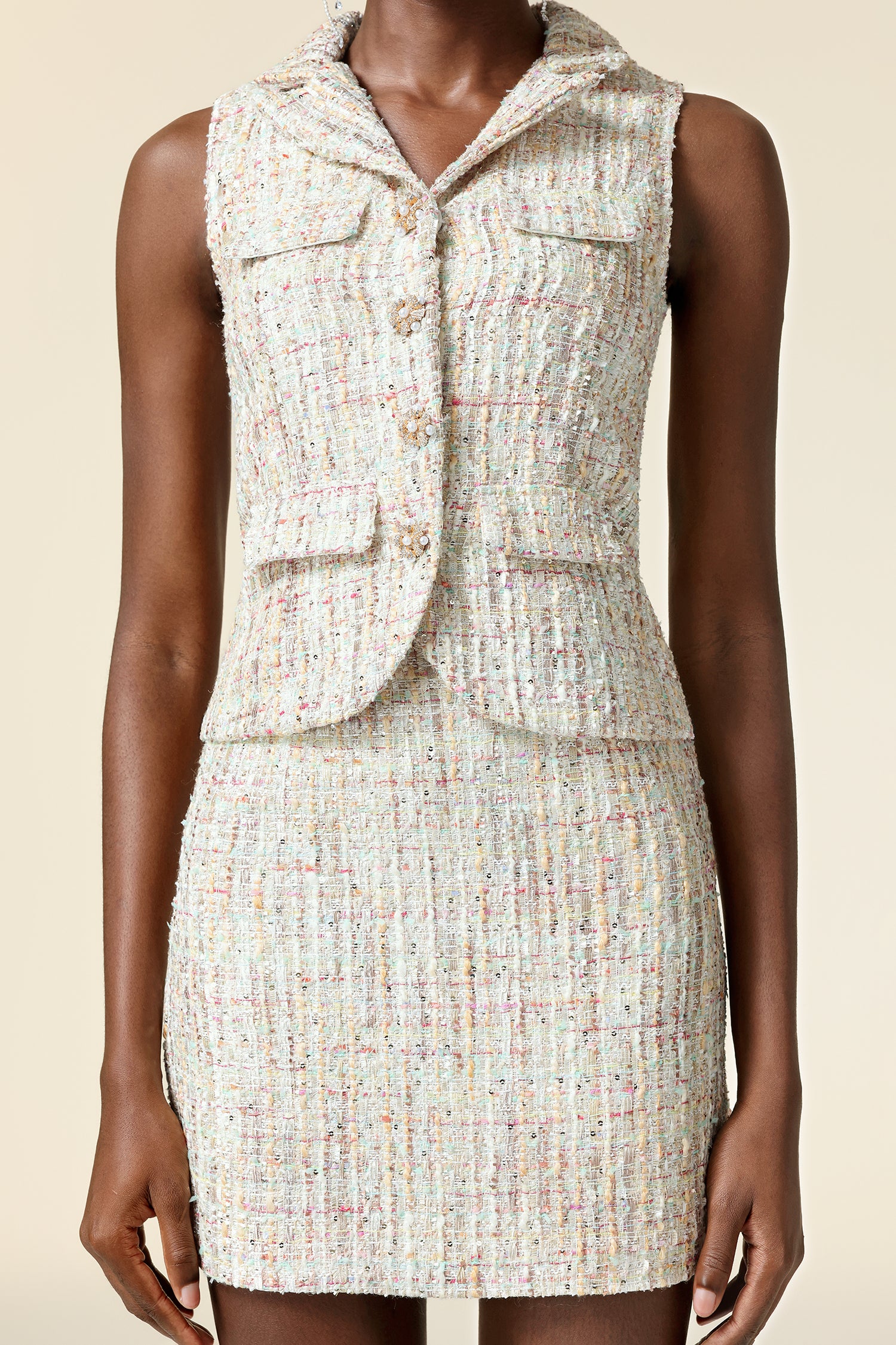Havani V-Neck Sleeveless Sequin Top And Skirt Two-Piece Set