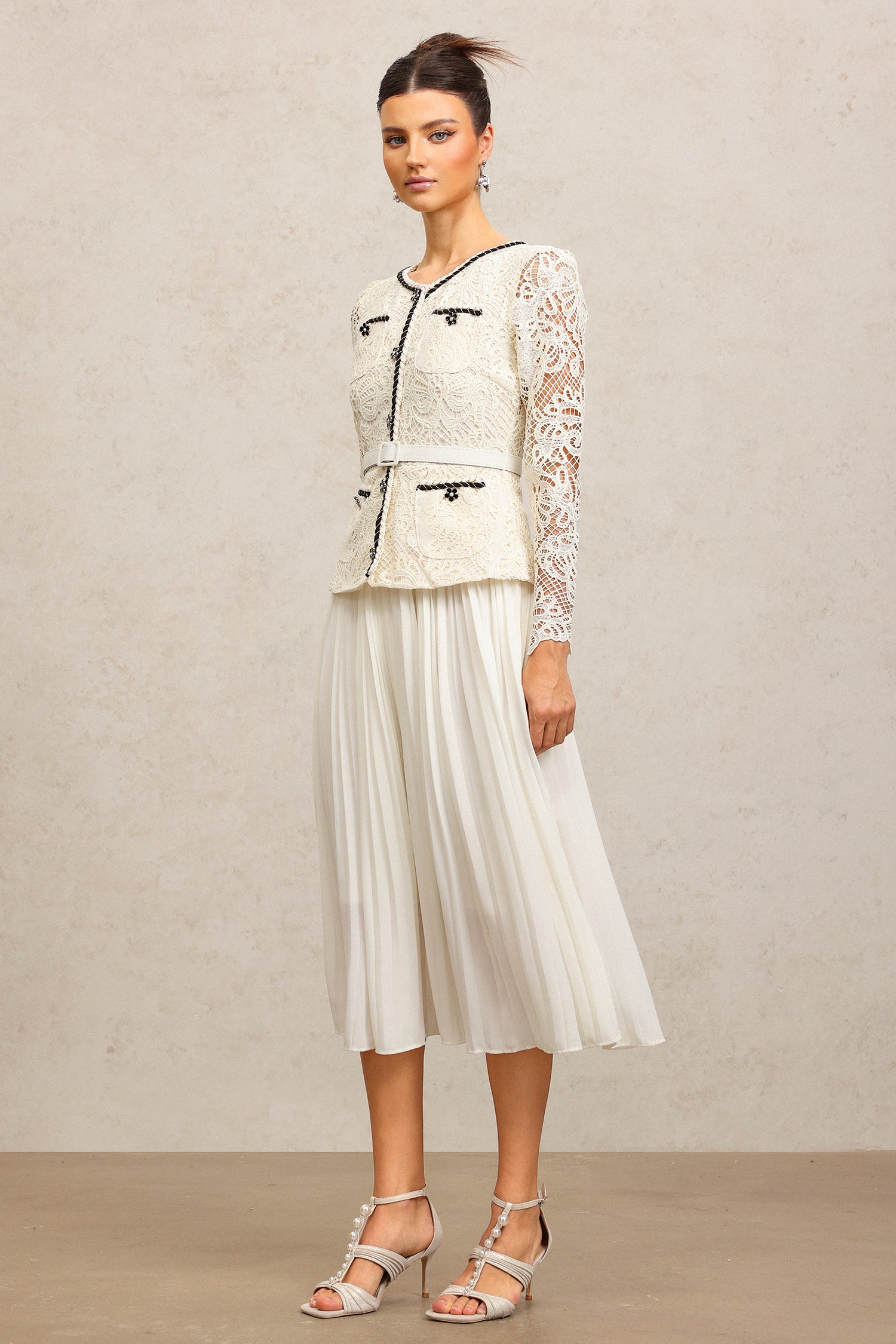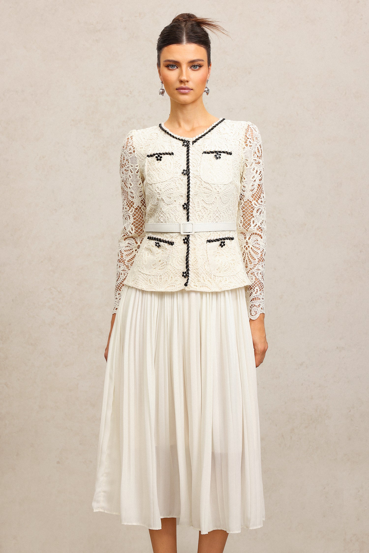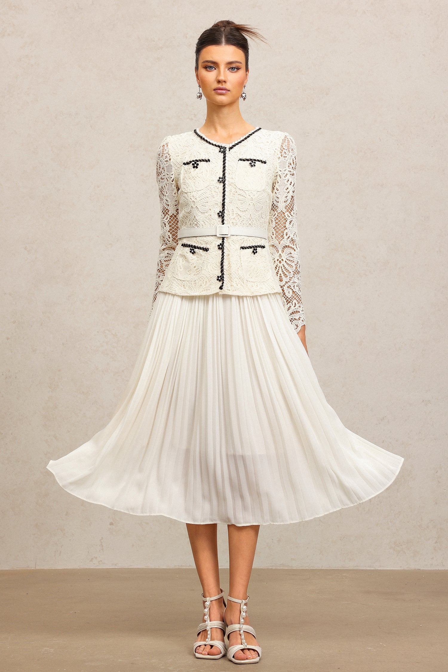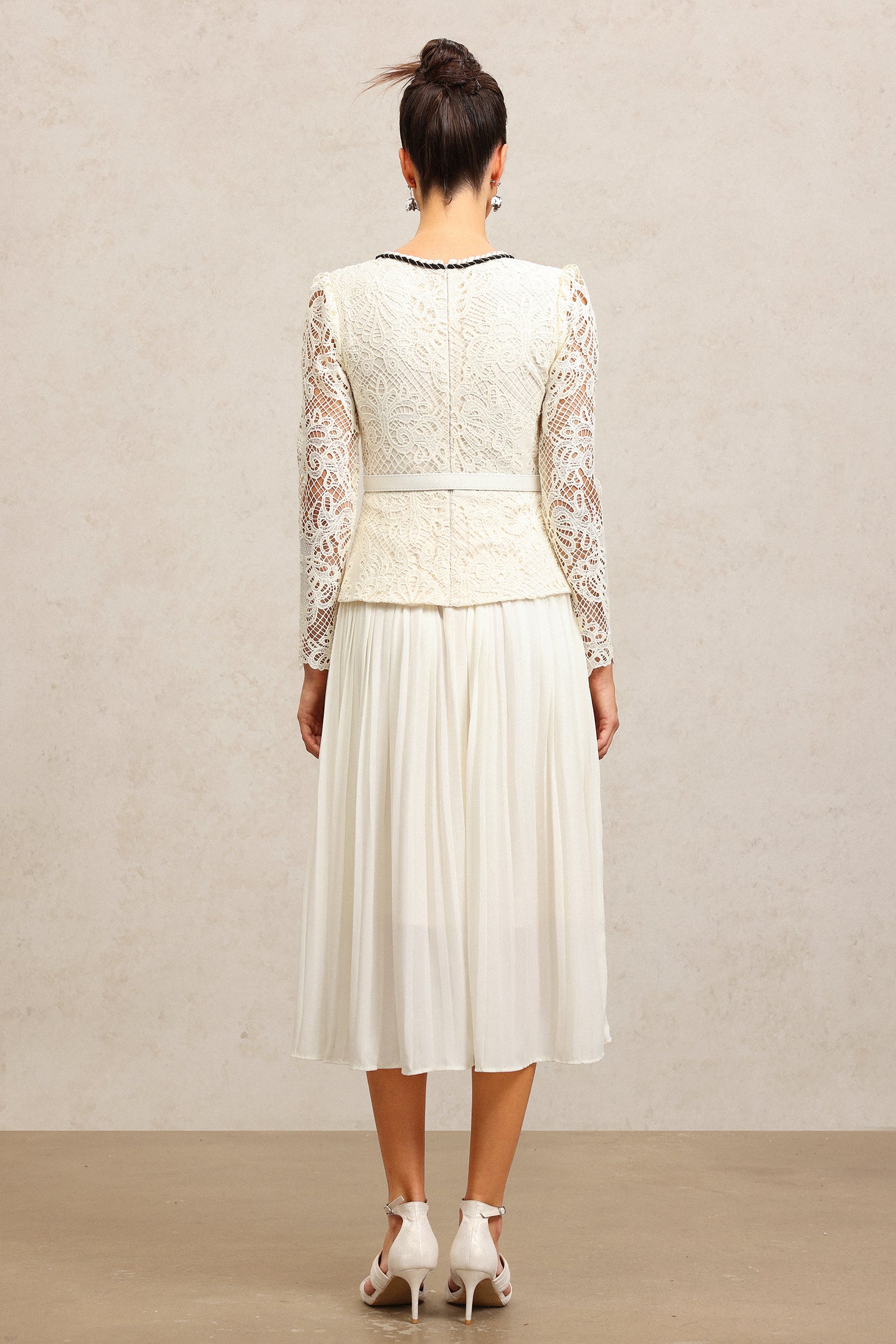Holly Round Neck Long Sleeves Lace Folds Midi Dress