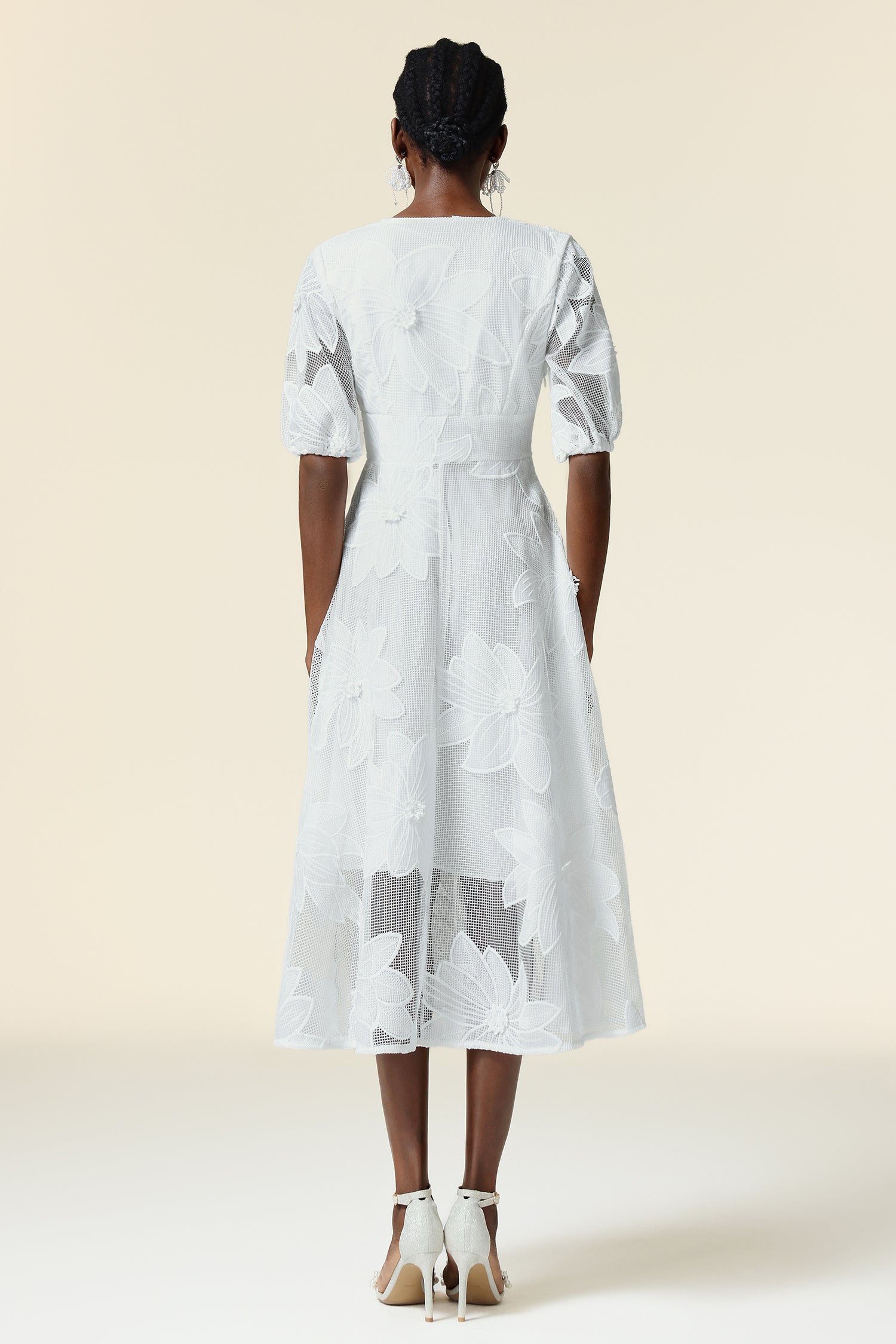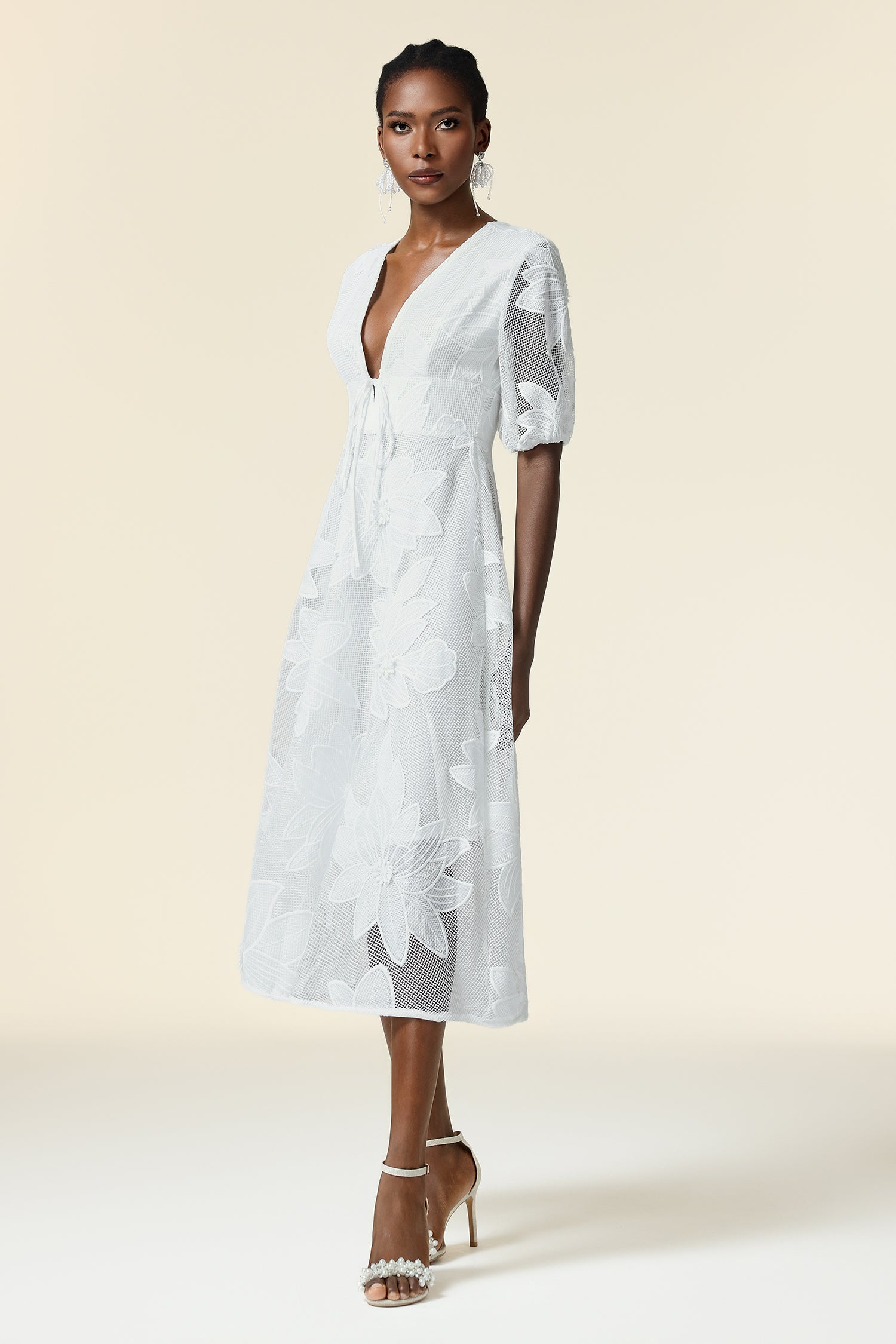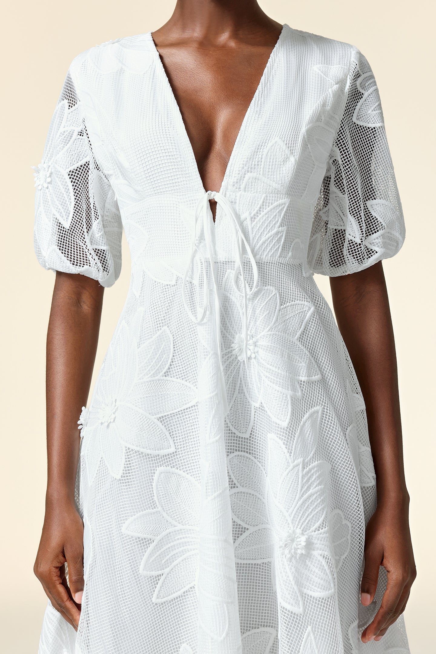 Loru Deep-V Puff Sleeve Bowknot Lace Maxi Dress