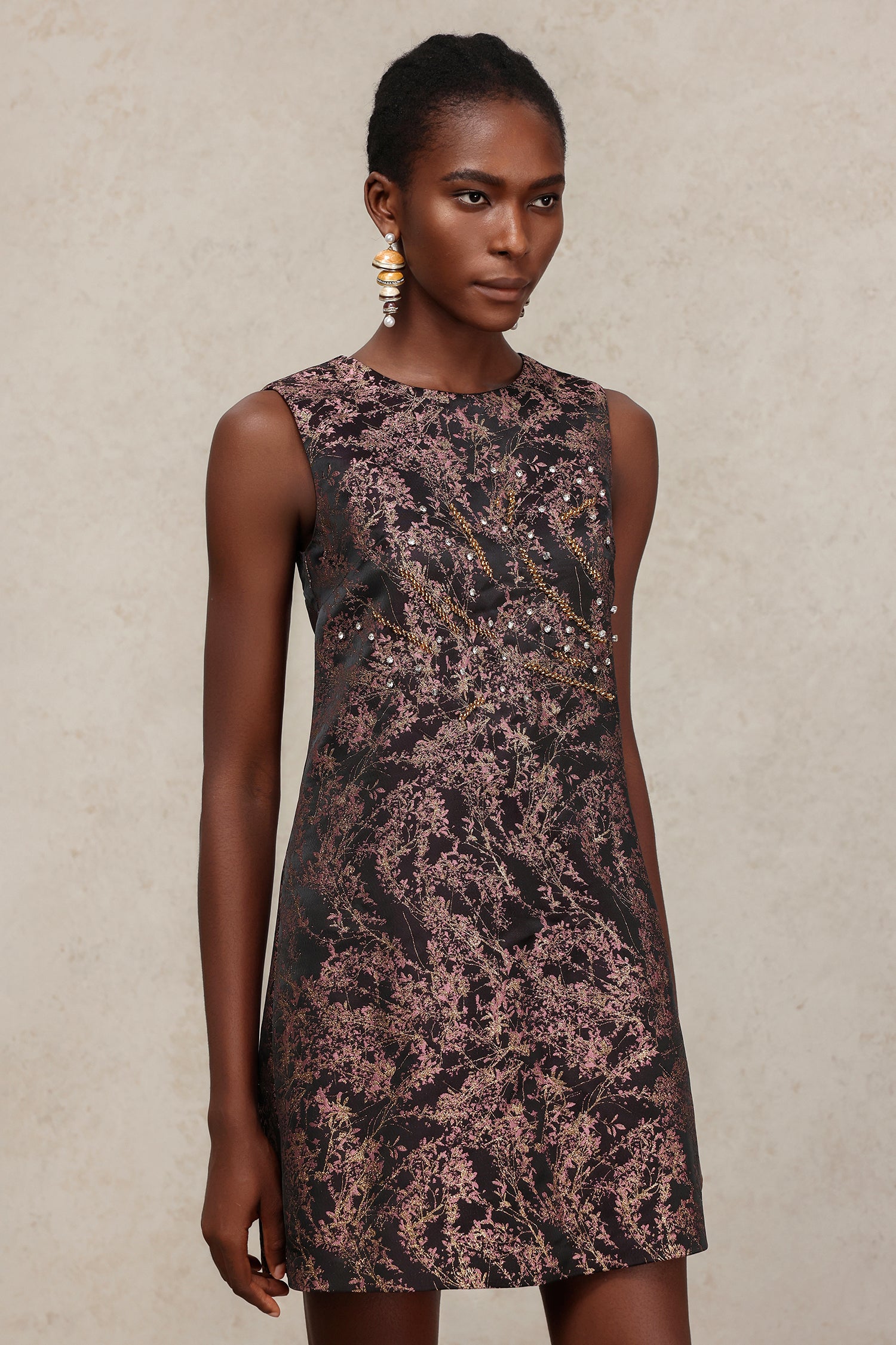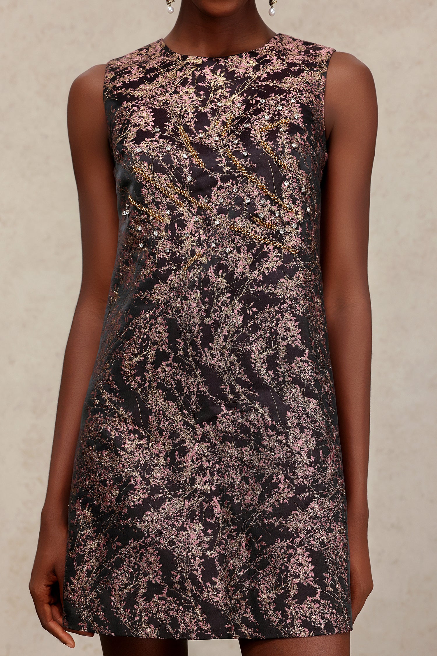 Marlene Round Neck Sleeveless Diamond Mini Dress