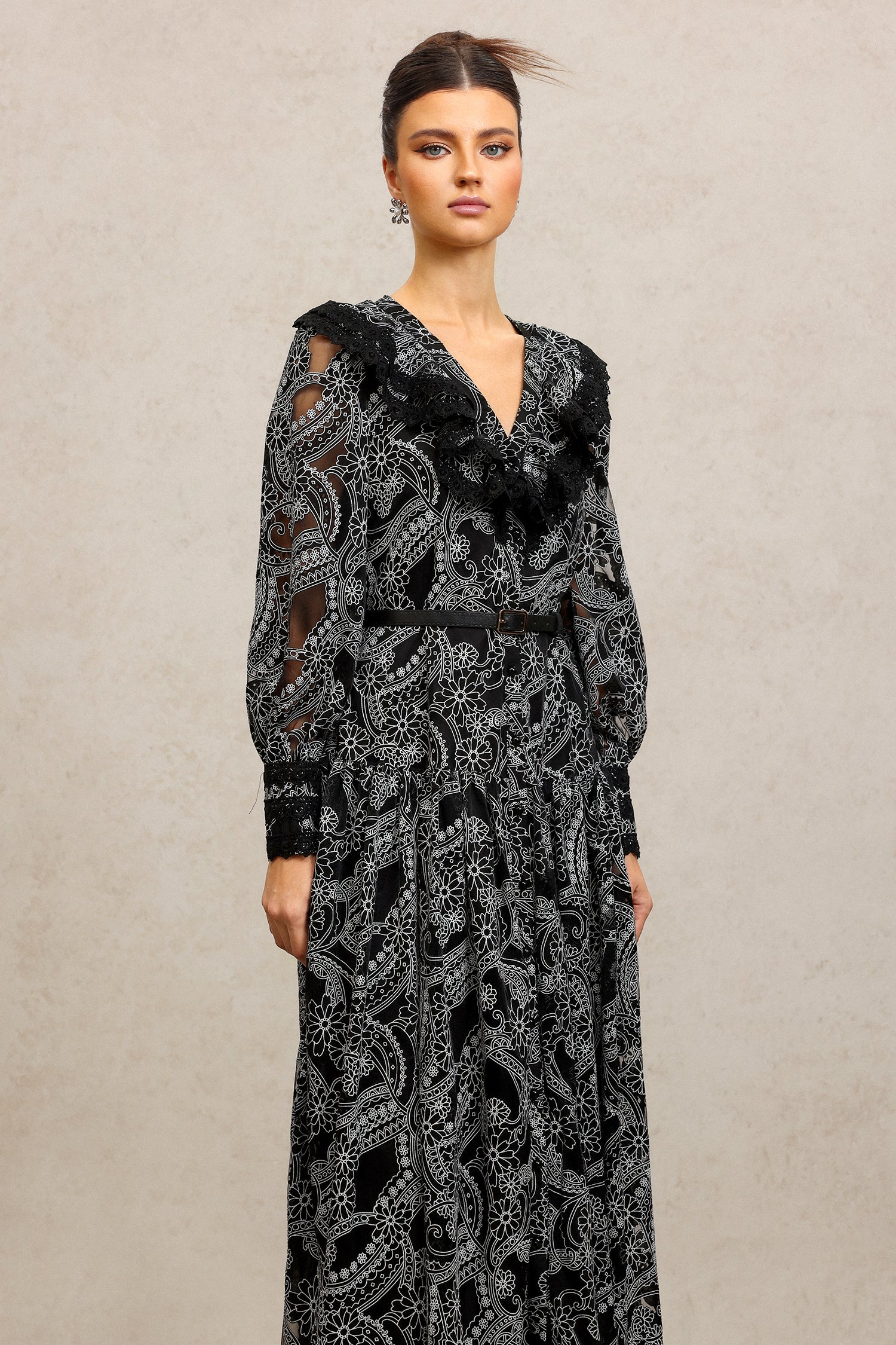Nailah V-Neck Long Sleeves Lace Folds Maxi Dress