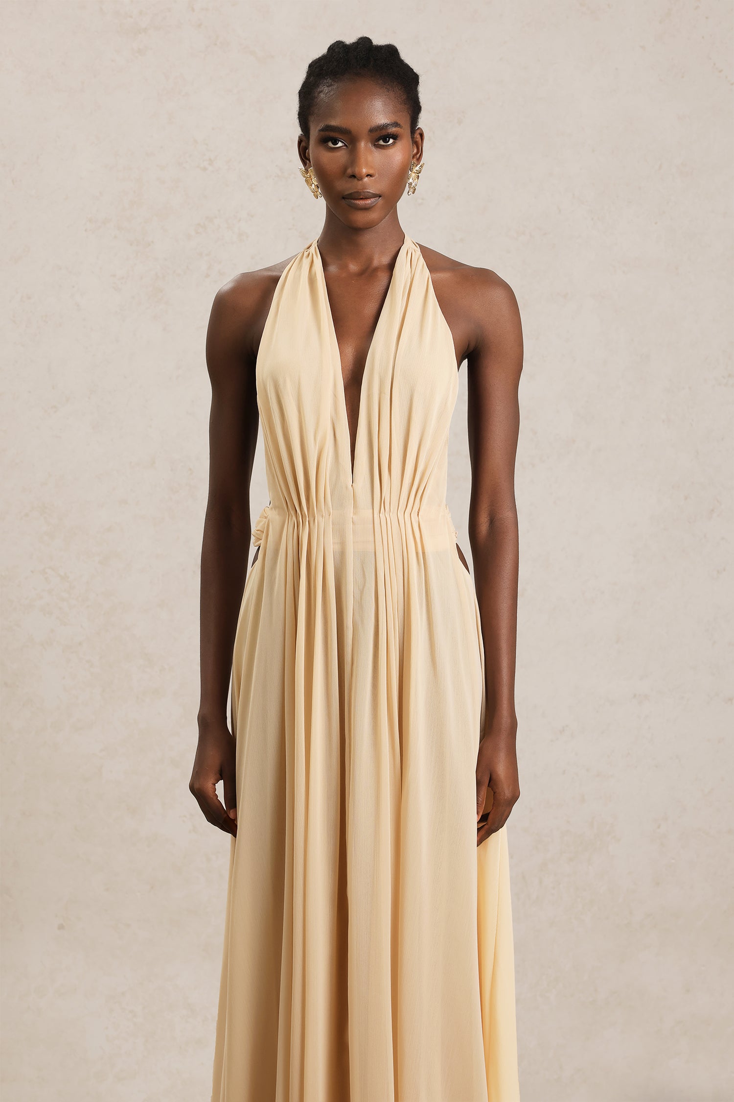 Ridia V-Neck Sleeveless Folds Hollow Out Maxi Dress