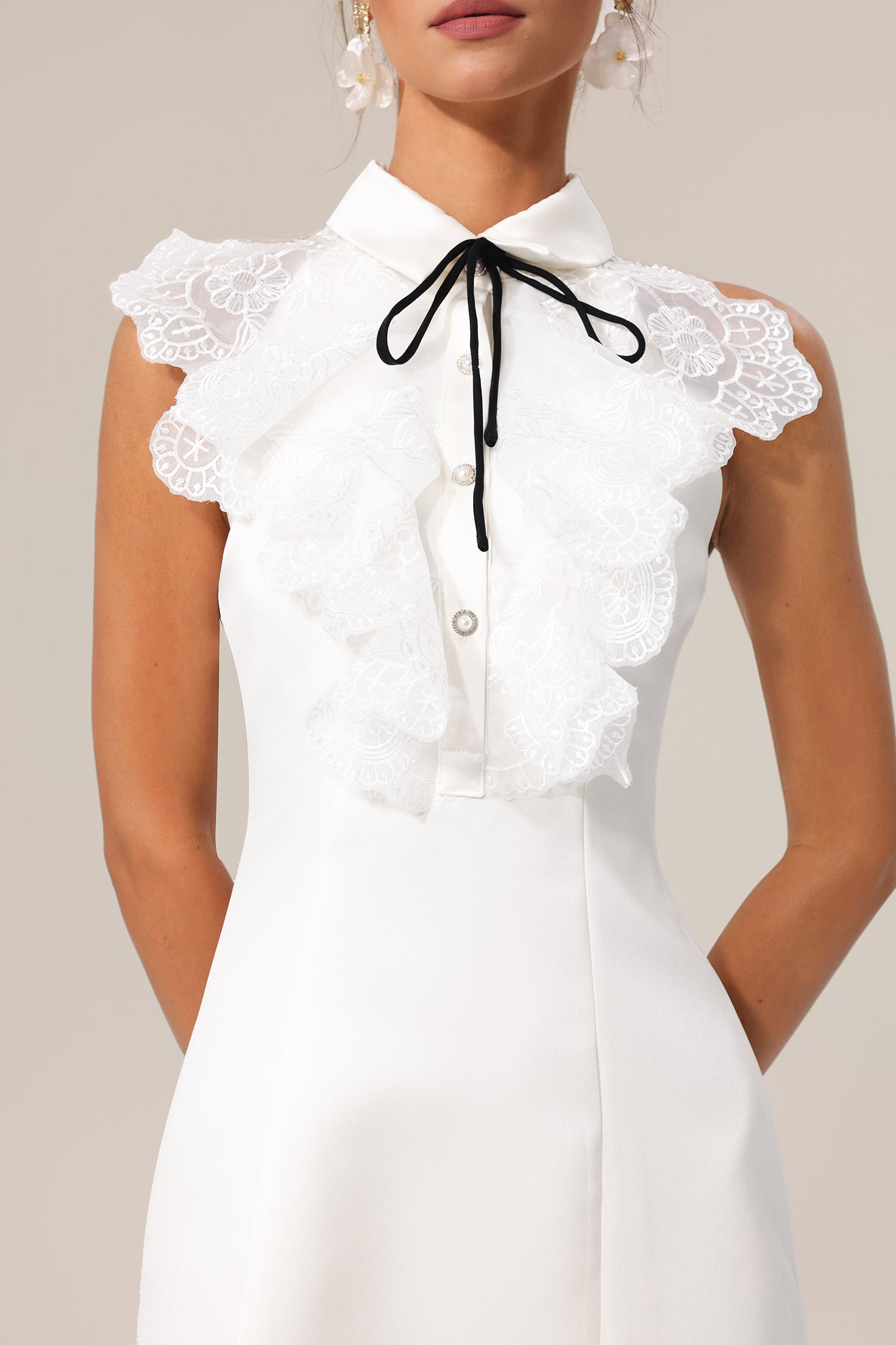 Tersa Sleeveless Bowknot Lace Folds Mini Dress