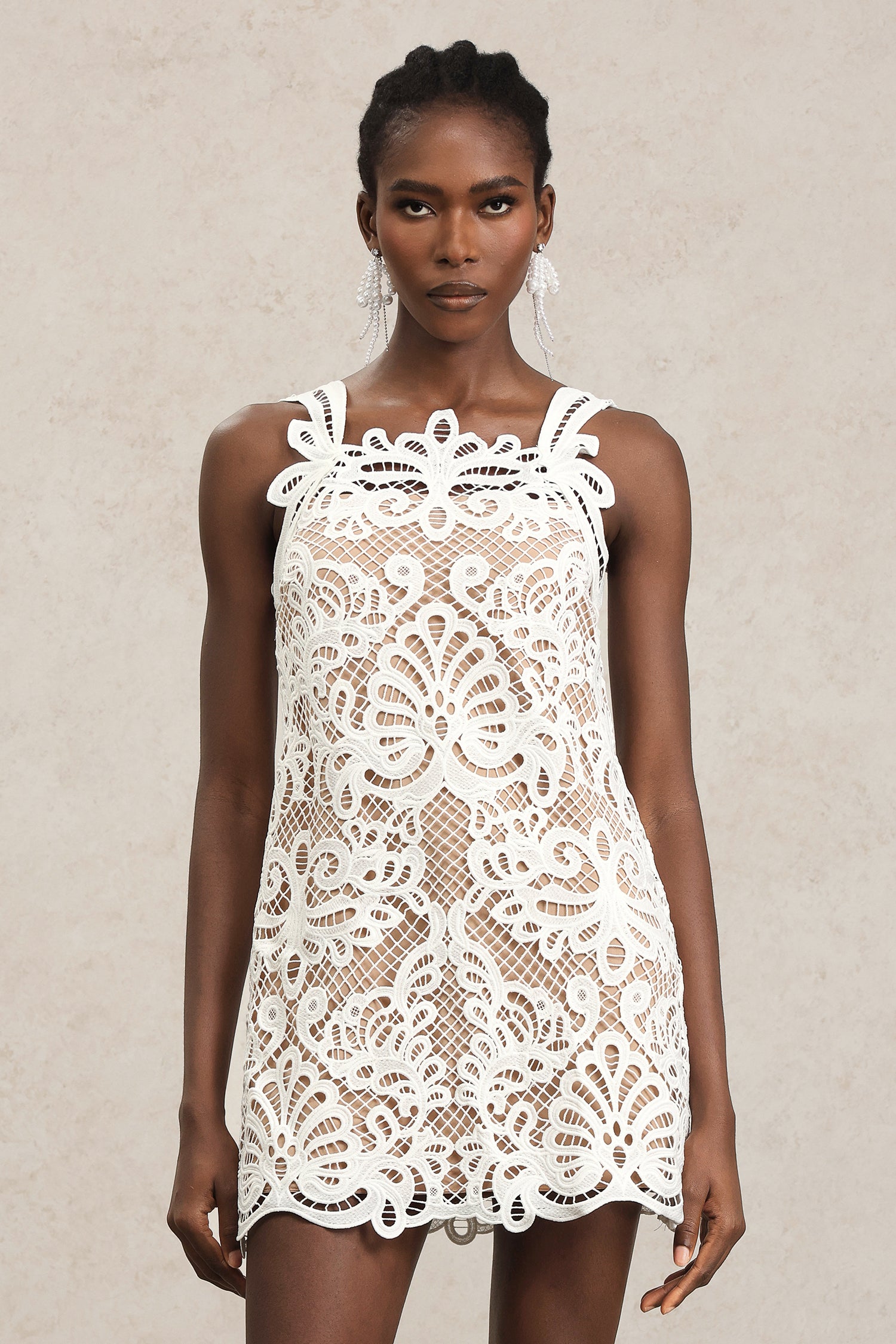 Tillie Halter Lace Hollow Out Mini Dress