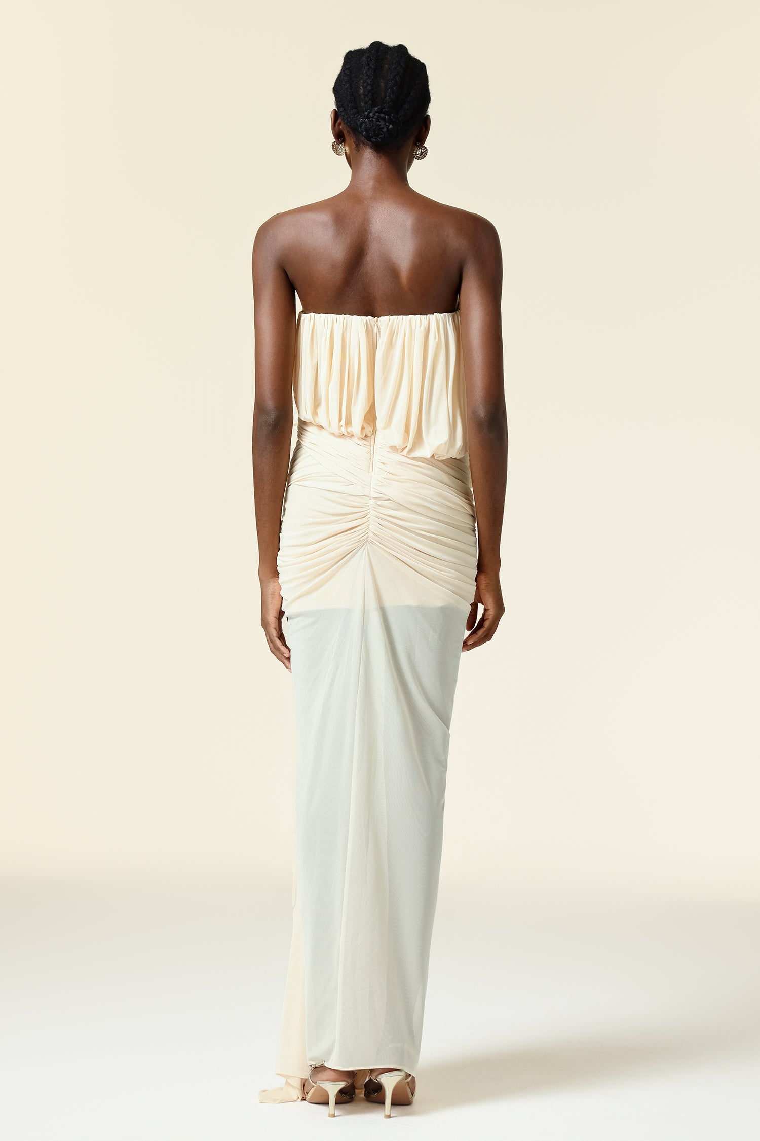 Tusare Sleeveless Folds Asymmetric Maxi Dress
