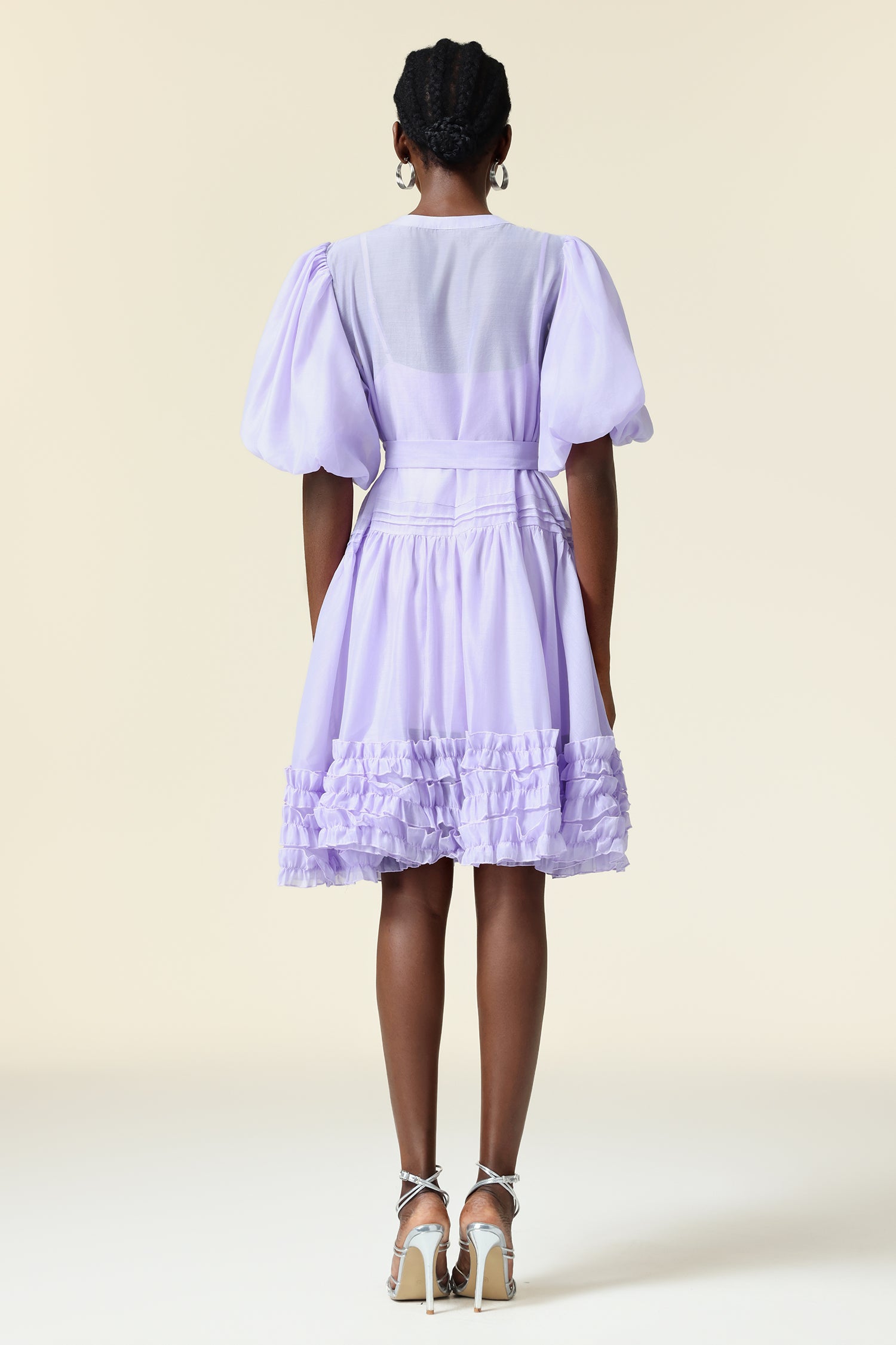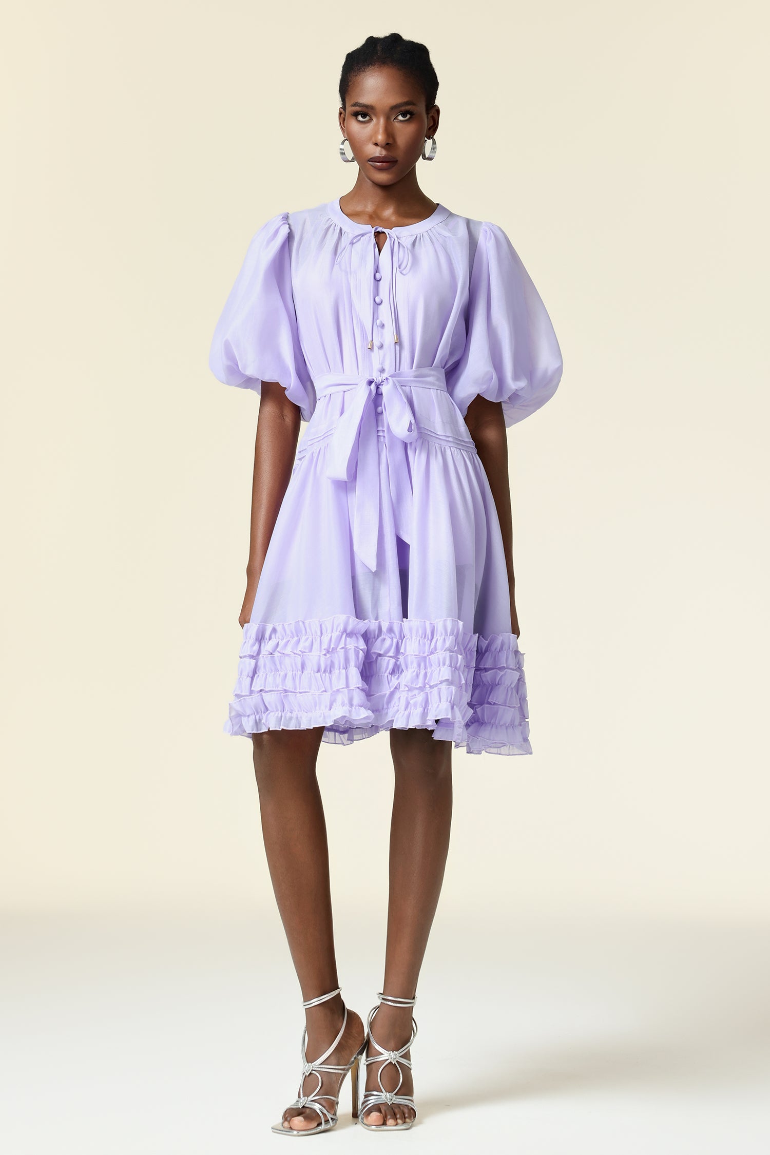 Xapana Round Neck Puff Sleeve Folds Mini Dress
