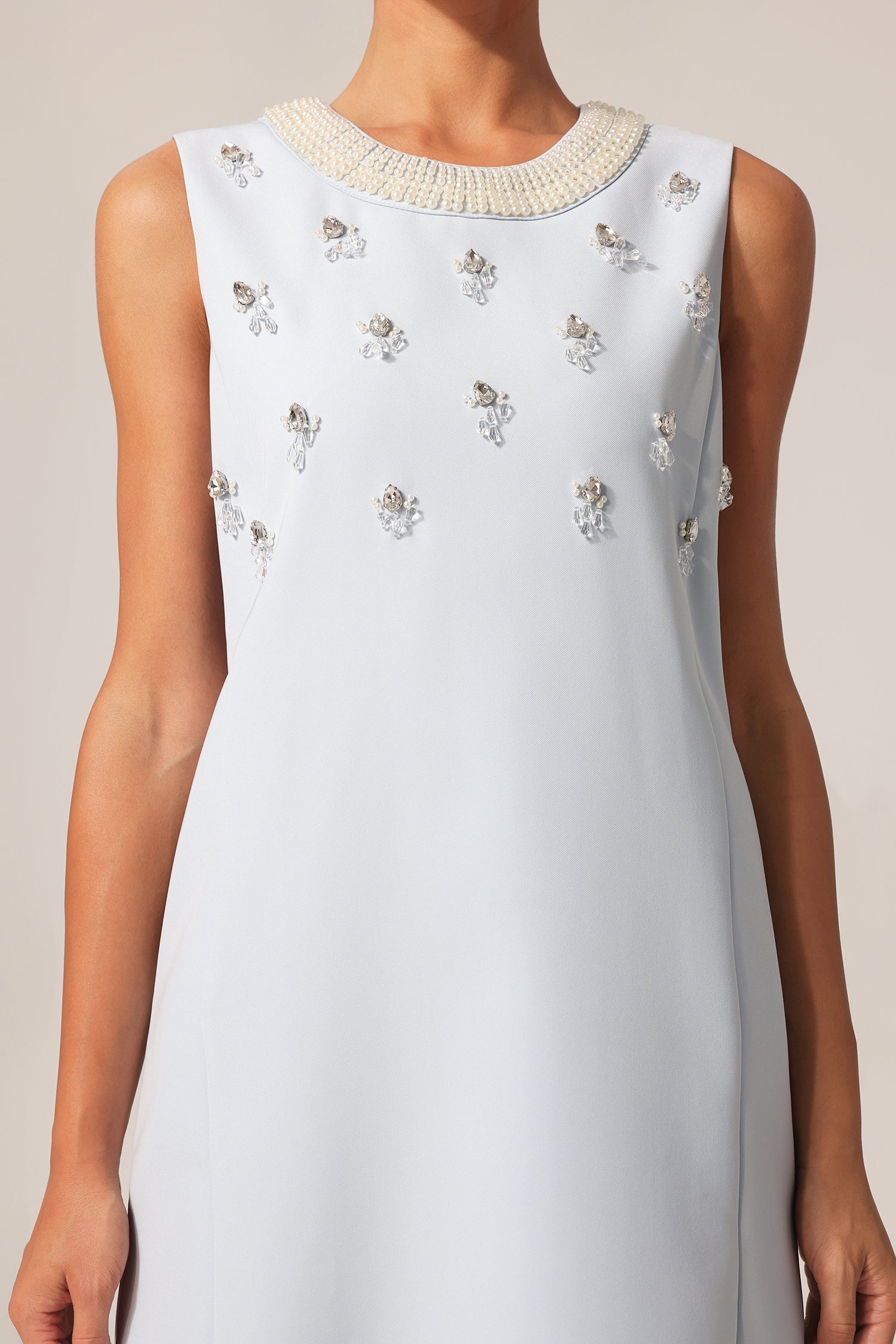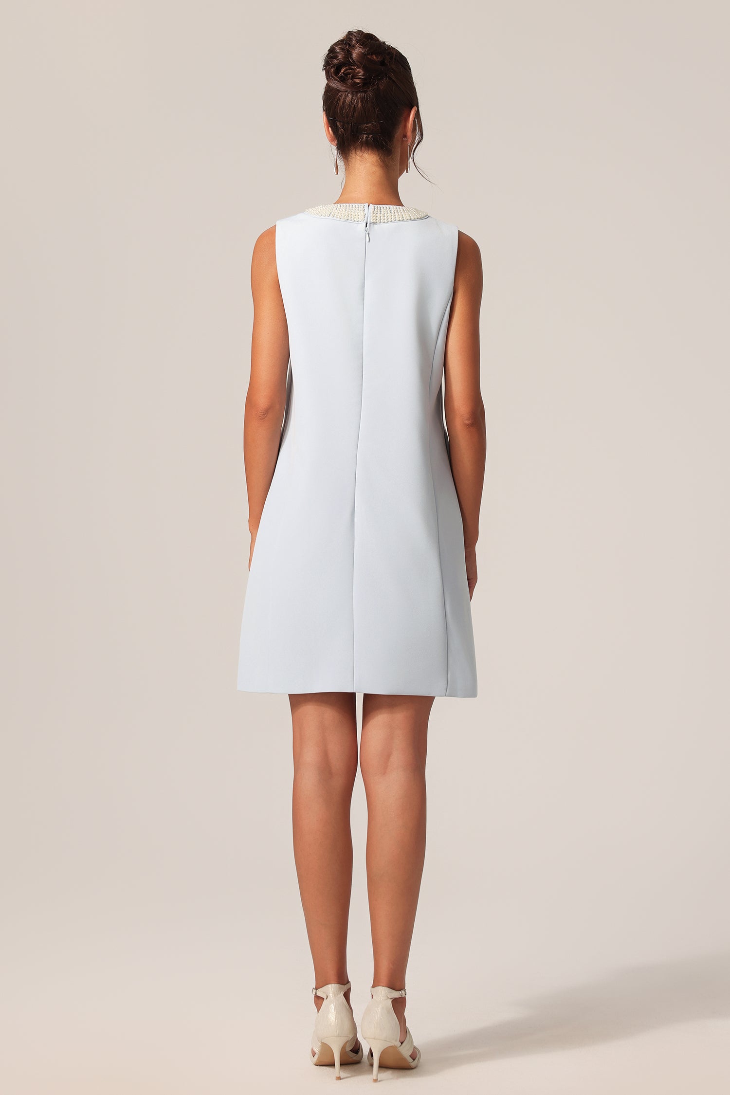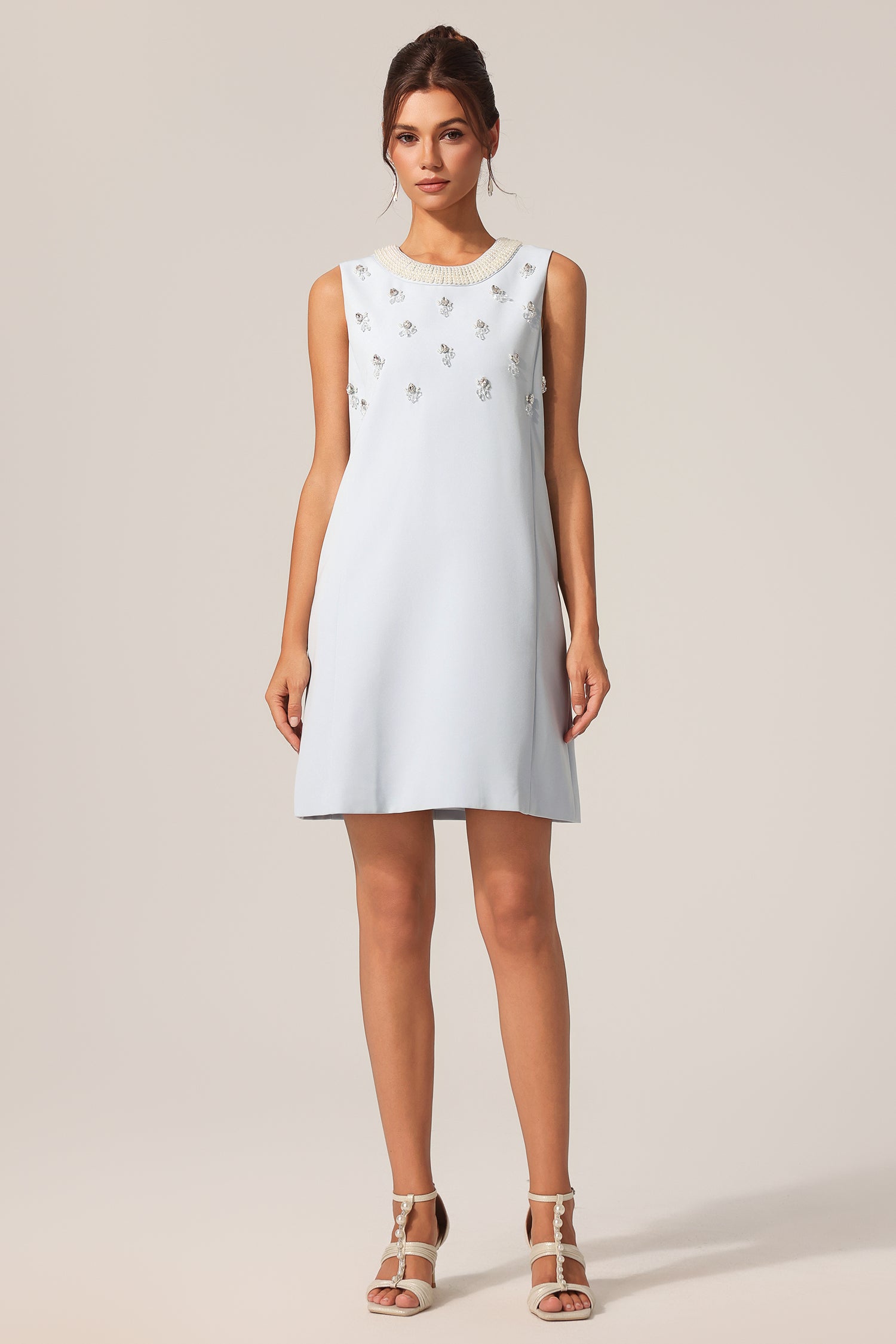 Xerca Round Neck Sleeveless Pearl Diamond Mini Dress