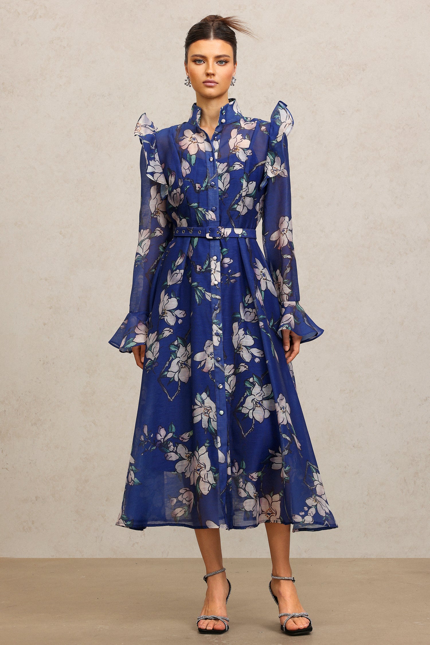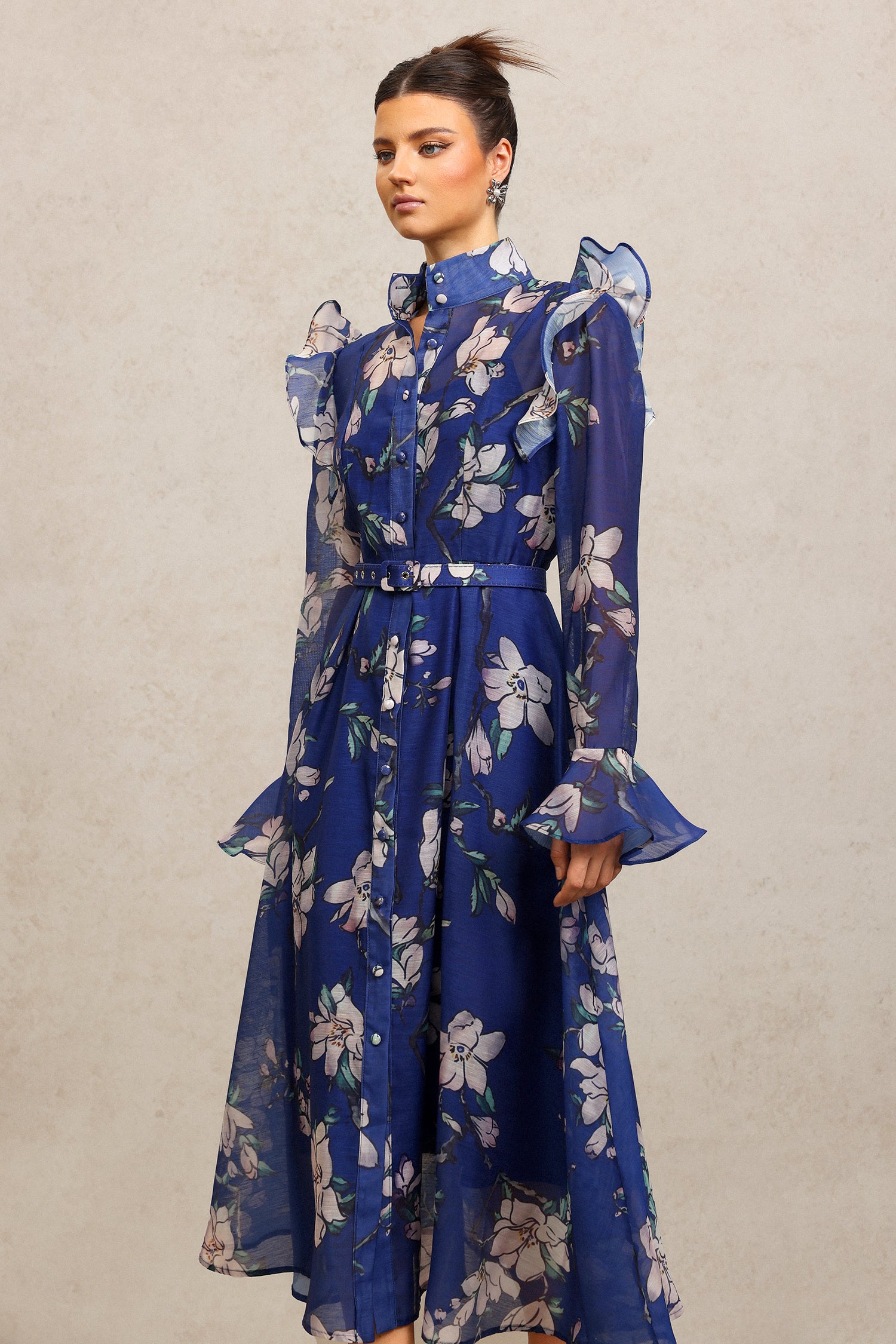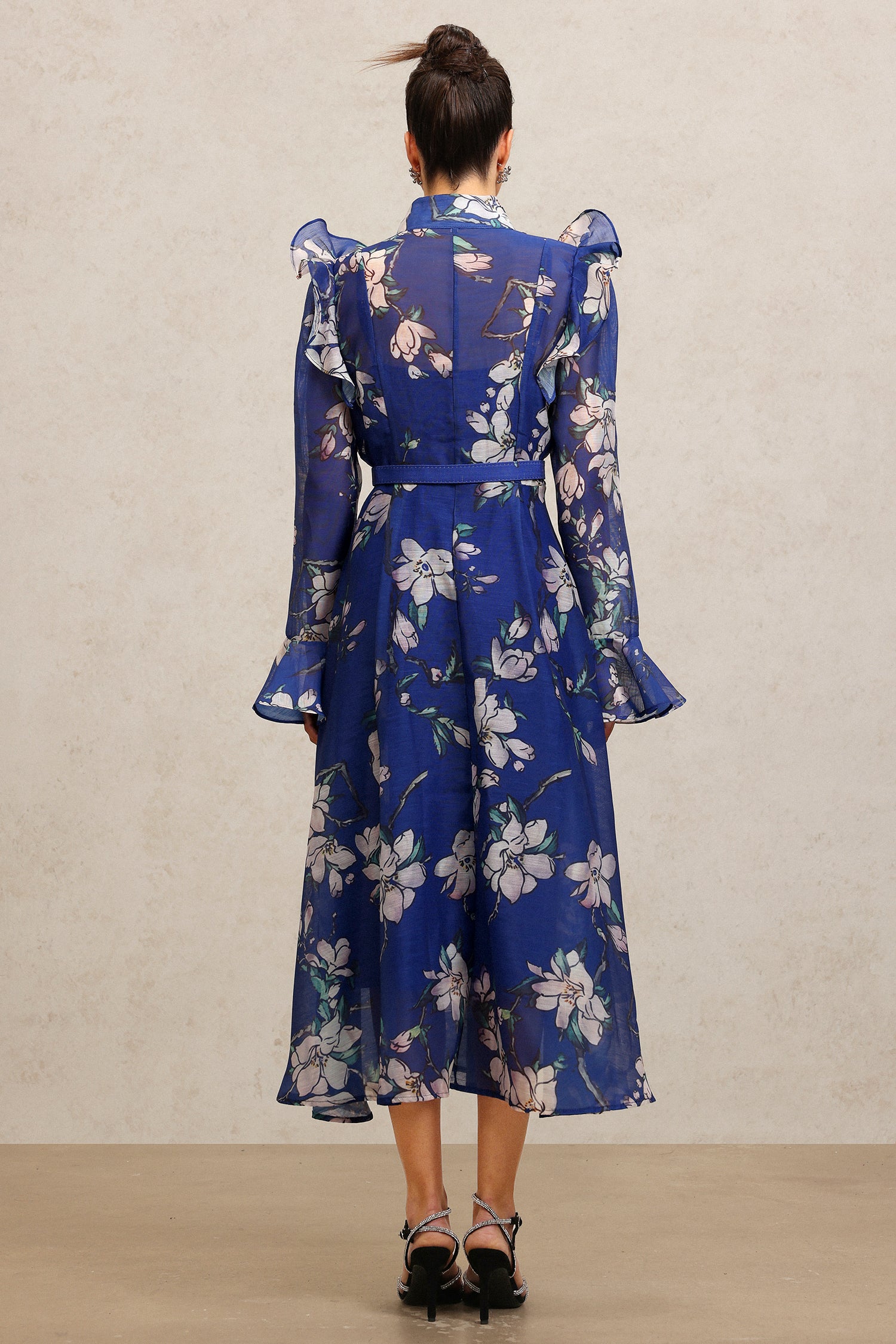 Yurio Long Sleeves Floral Printed Folds Maxi Dress