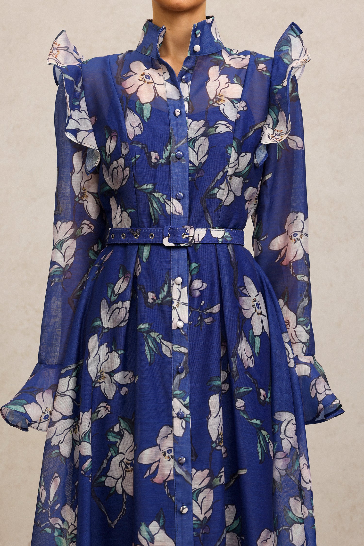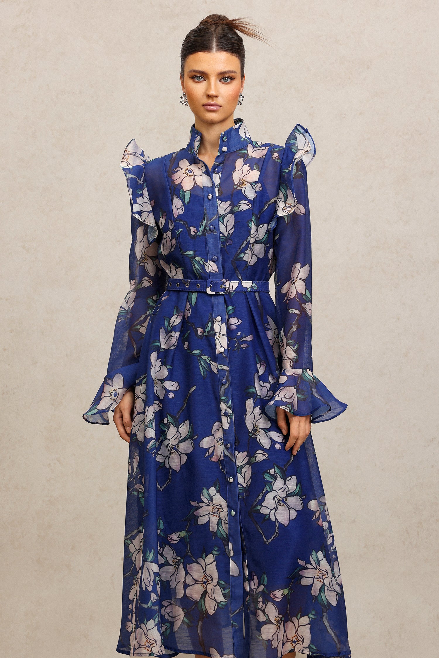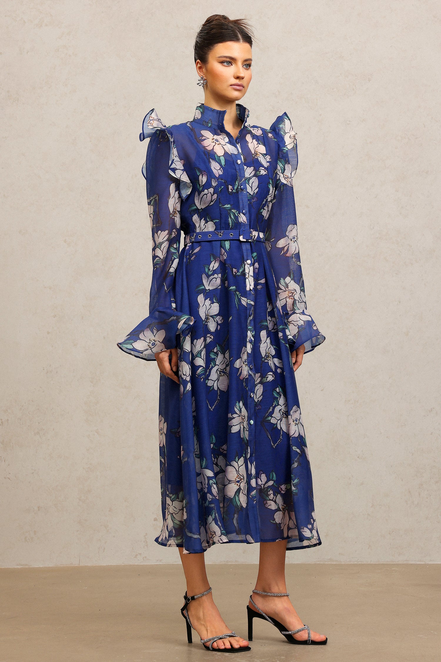 Yurio Long Sleeves Floral Printed Folds Maxi Dress