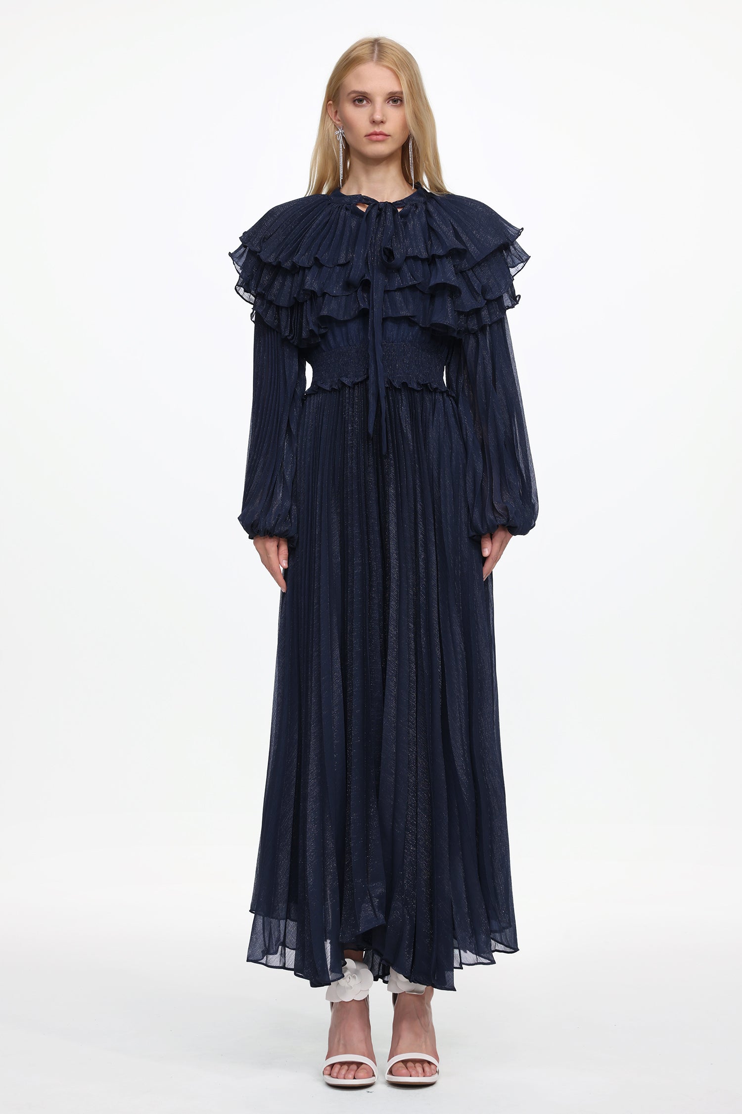 Sagoni Elegant Flowy Long Sleeve Tiered Ruffle Maxi Dress