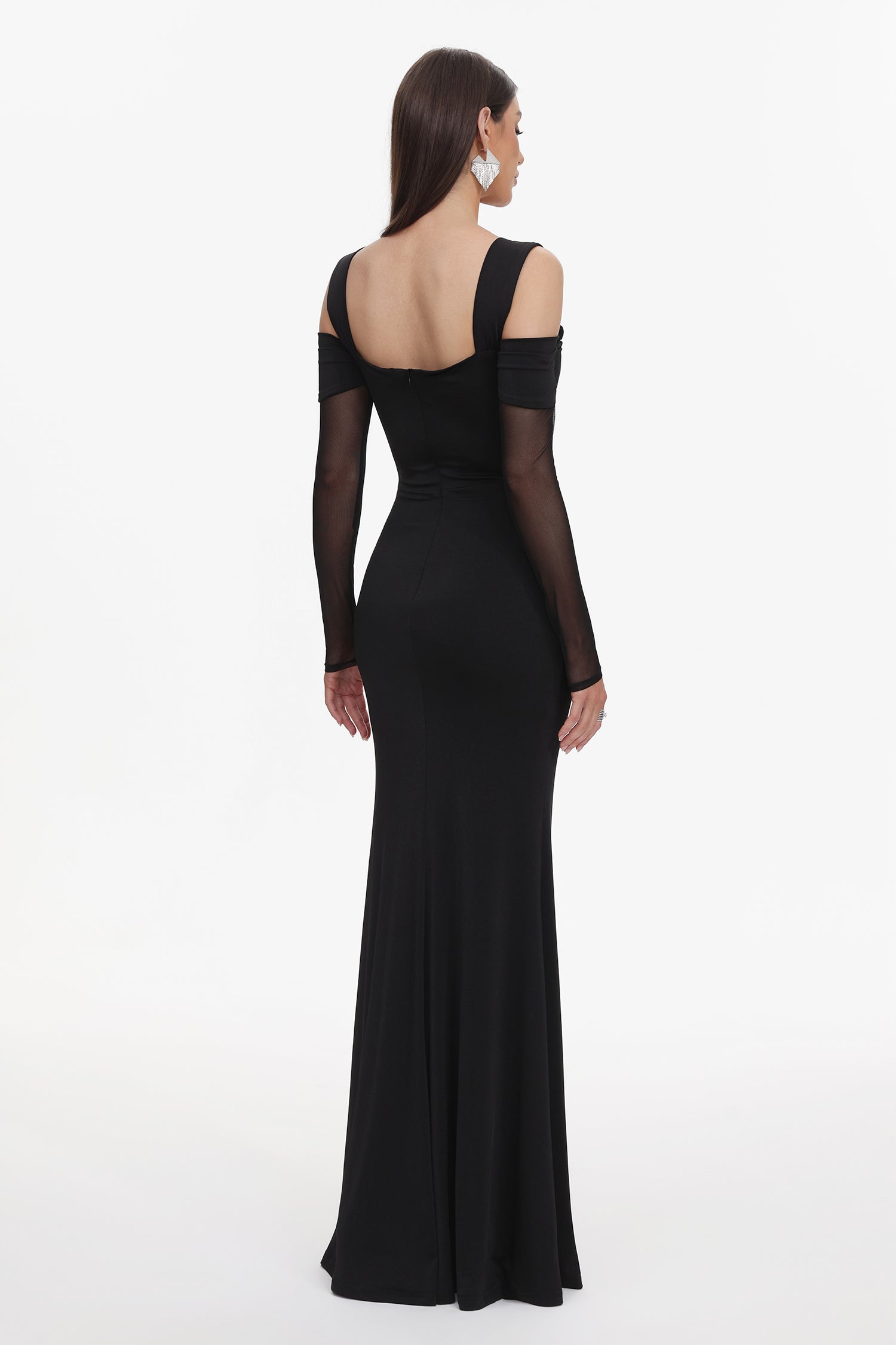 Lorin Elegant Contour Off Shoulder Long Sleeve High Slit Maxi Dress