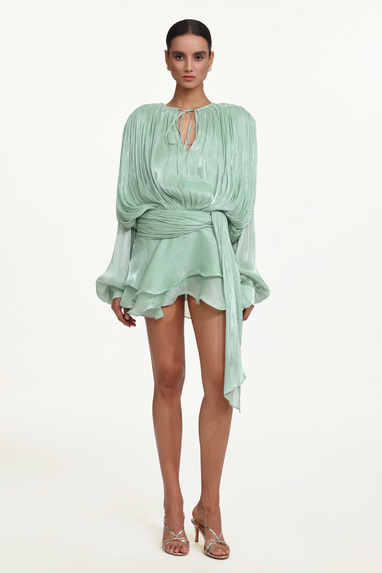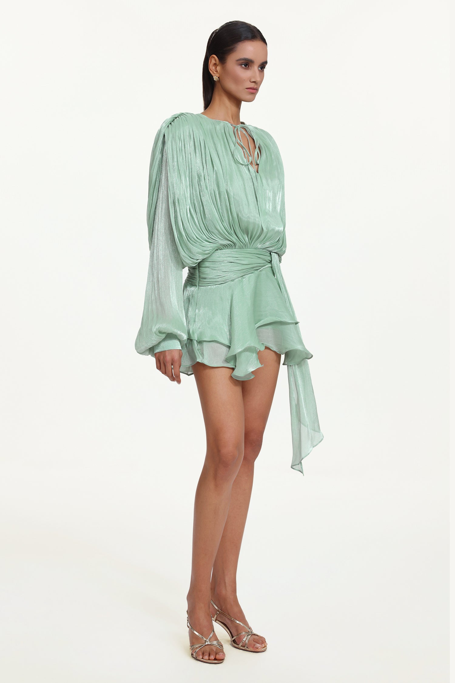 Dekia Long Sleeves Hollow Out Flounce Mini Dress
