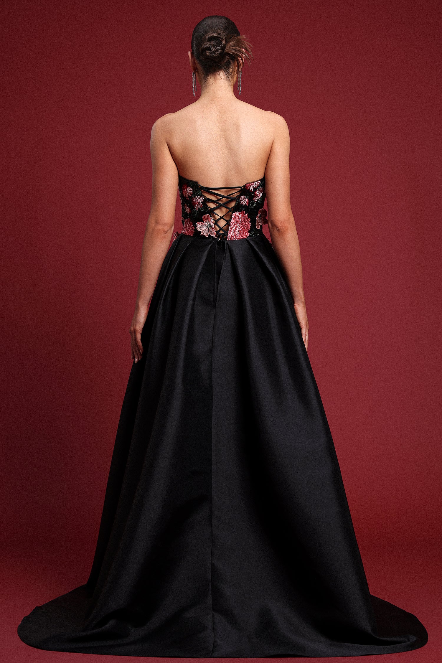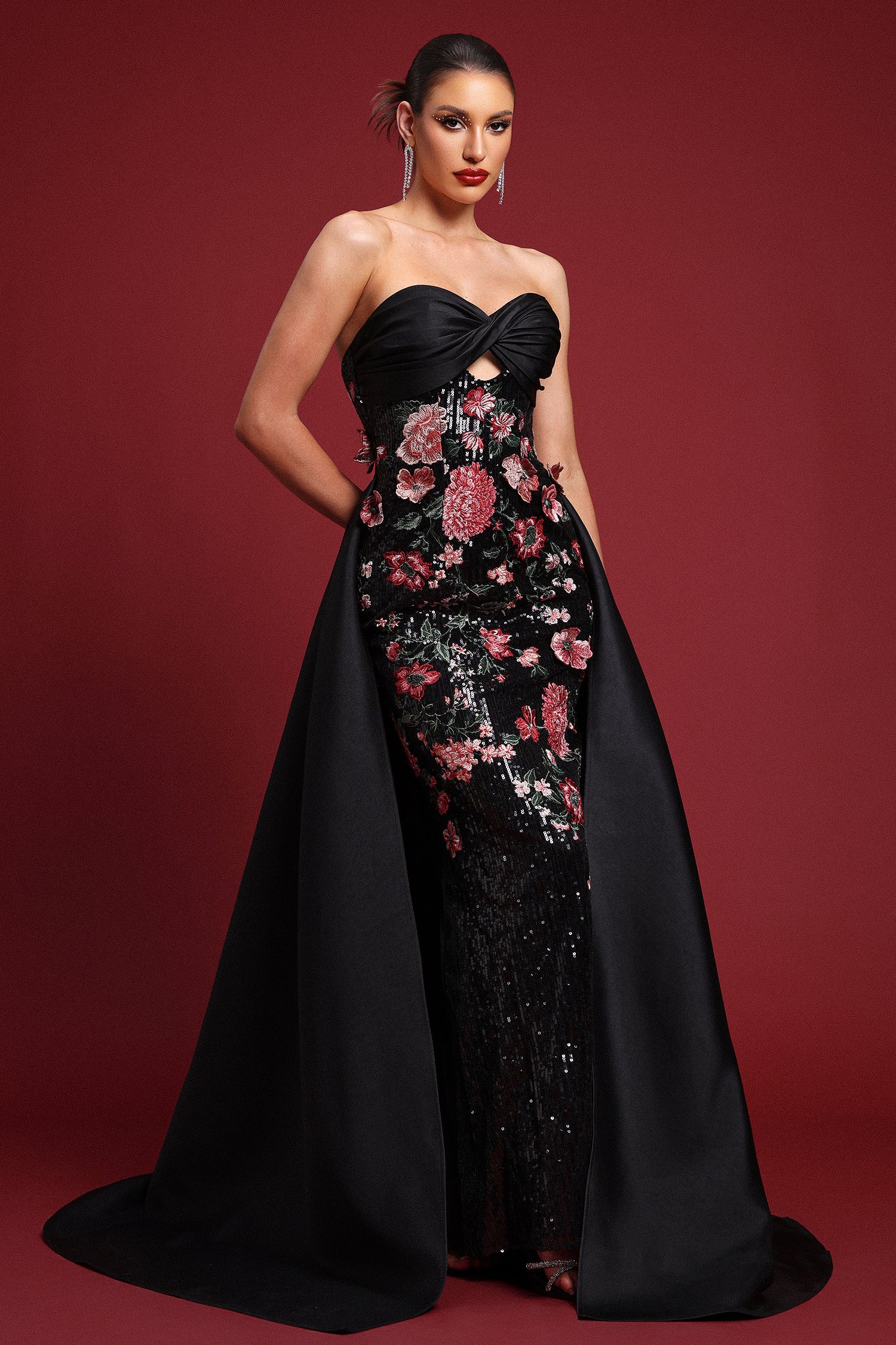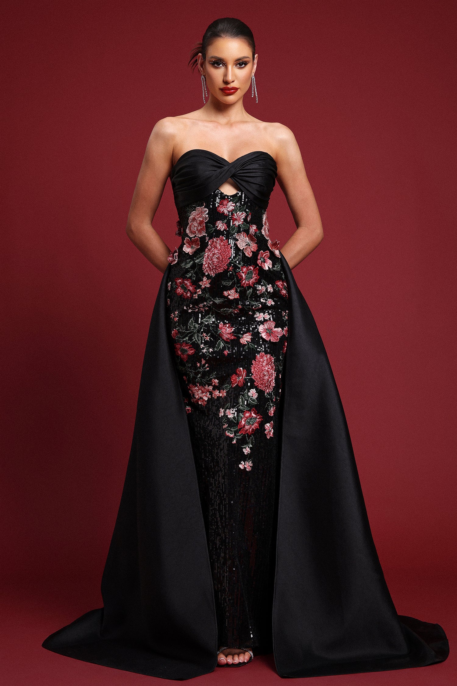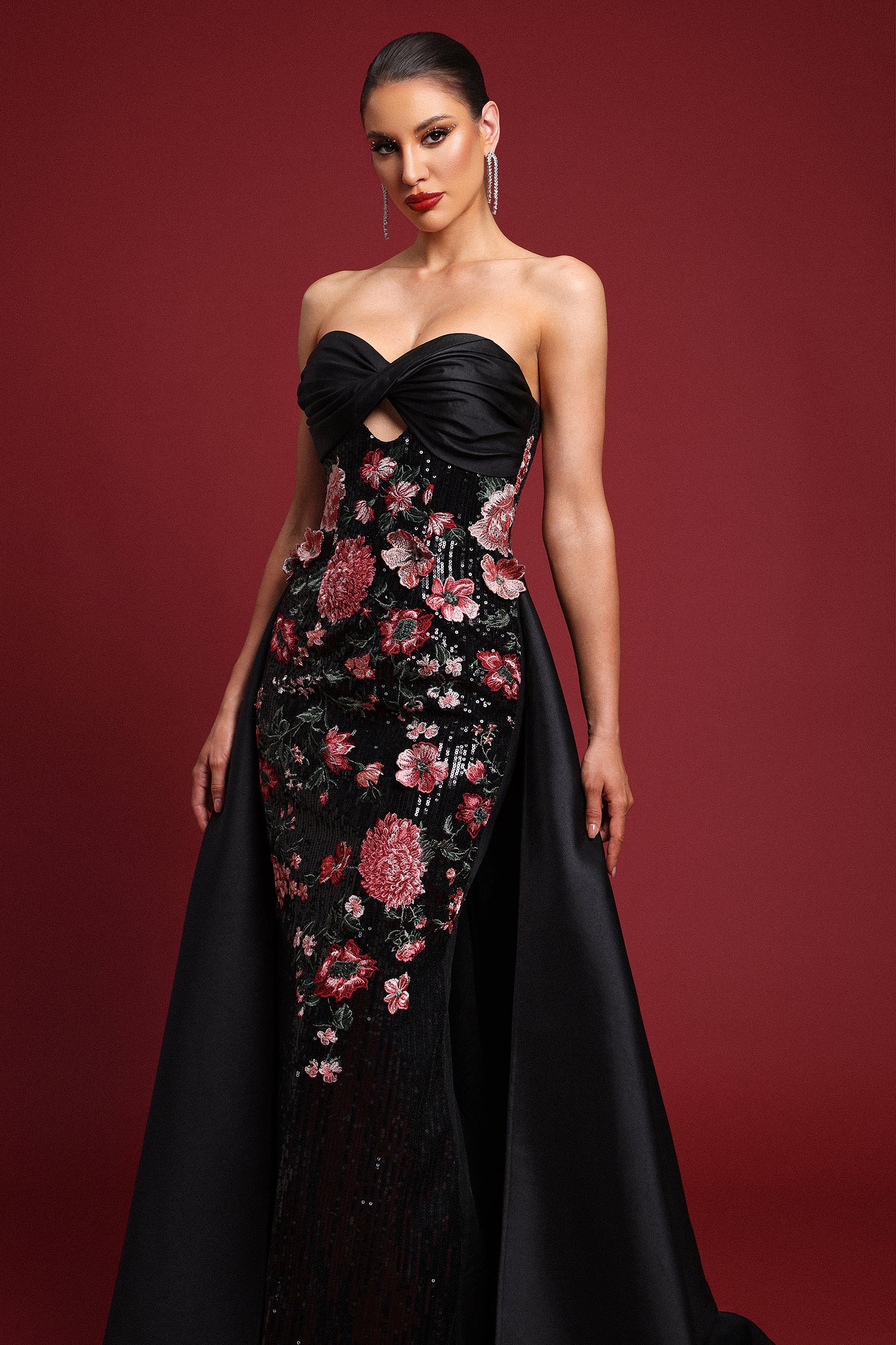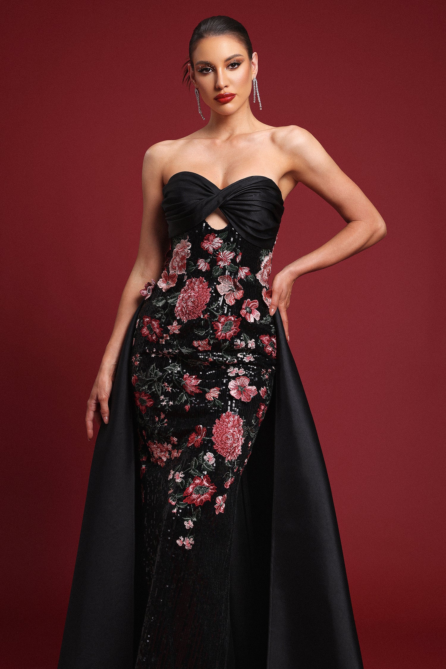 Doris Elegant Embroidered Strapless Floral Sequin Maxi Dress