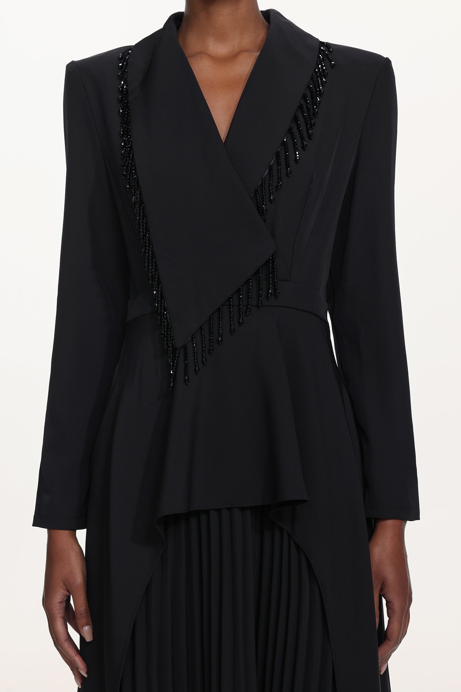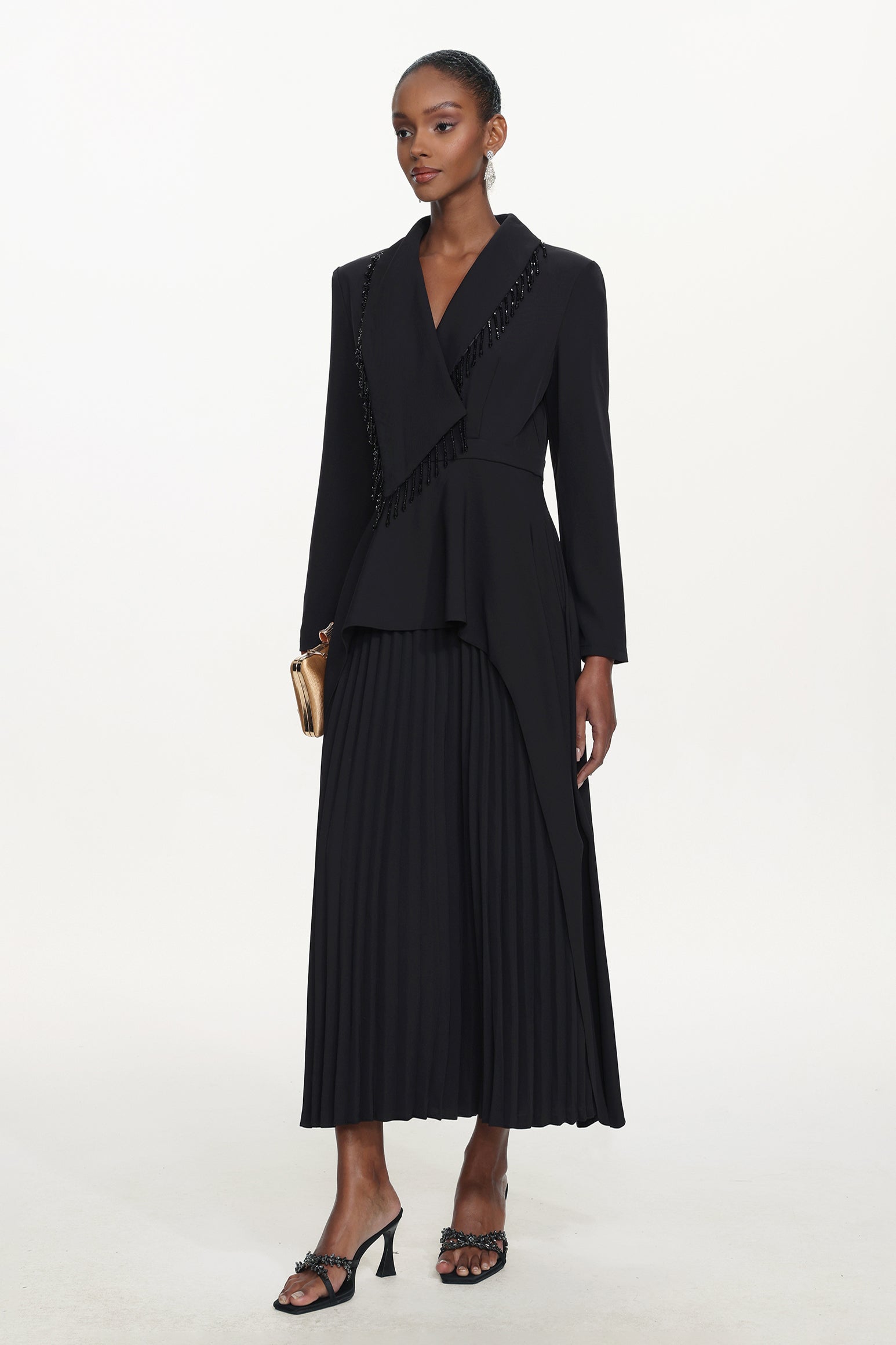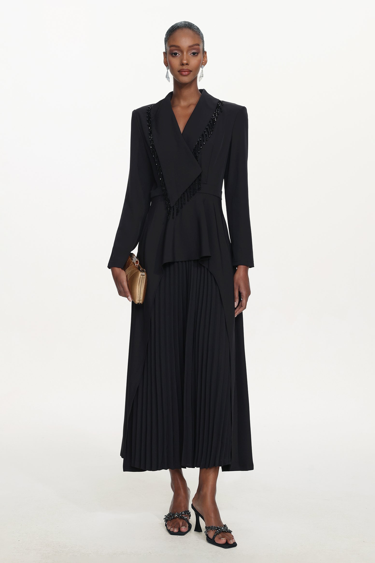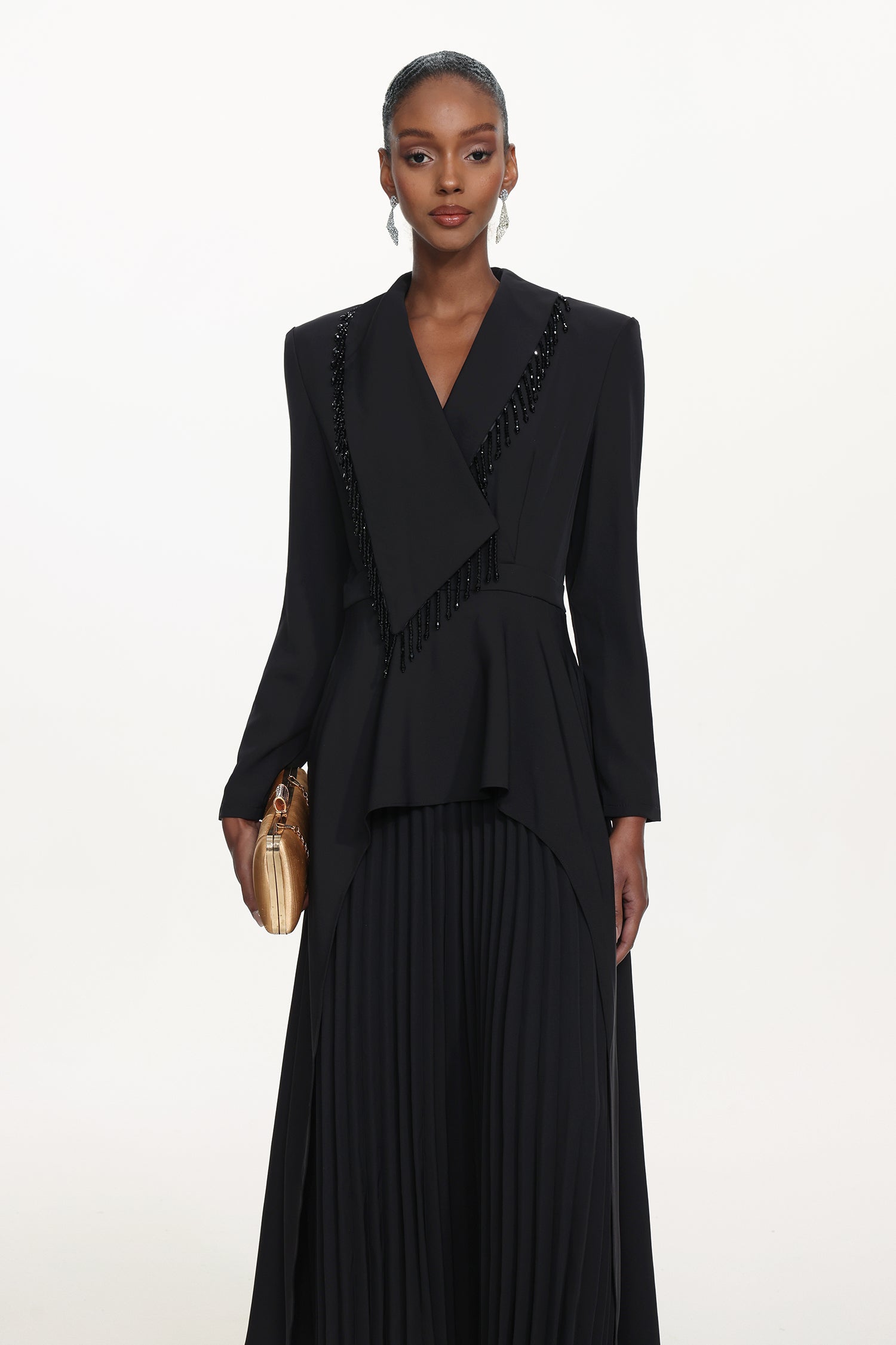 It is decorated with beaded strings, and the delicate decorations are prone to being pulled. Please avoid snagging when wearing and storing. It is recommended to hand wash or dry clean; do not machine wash.