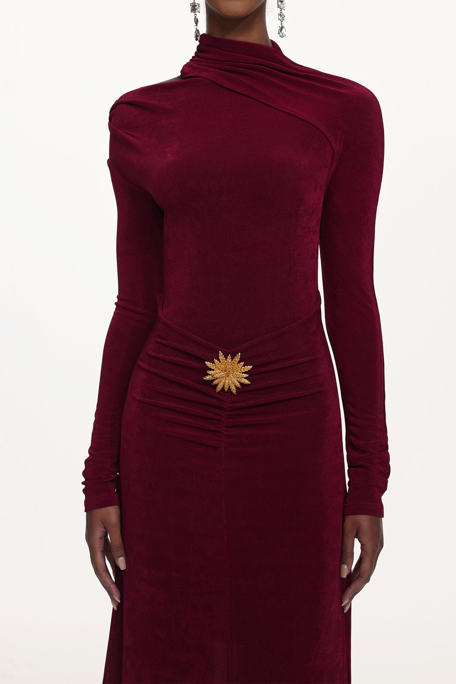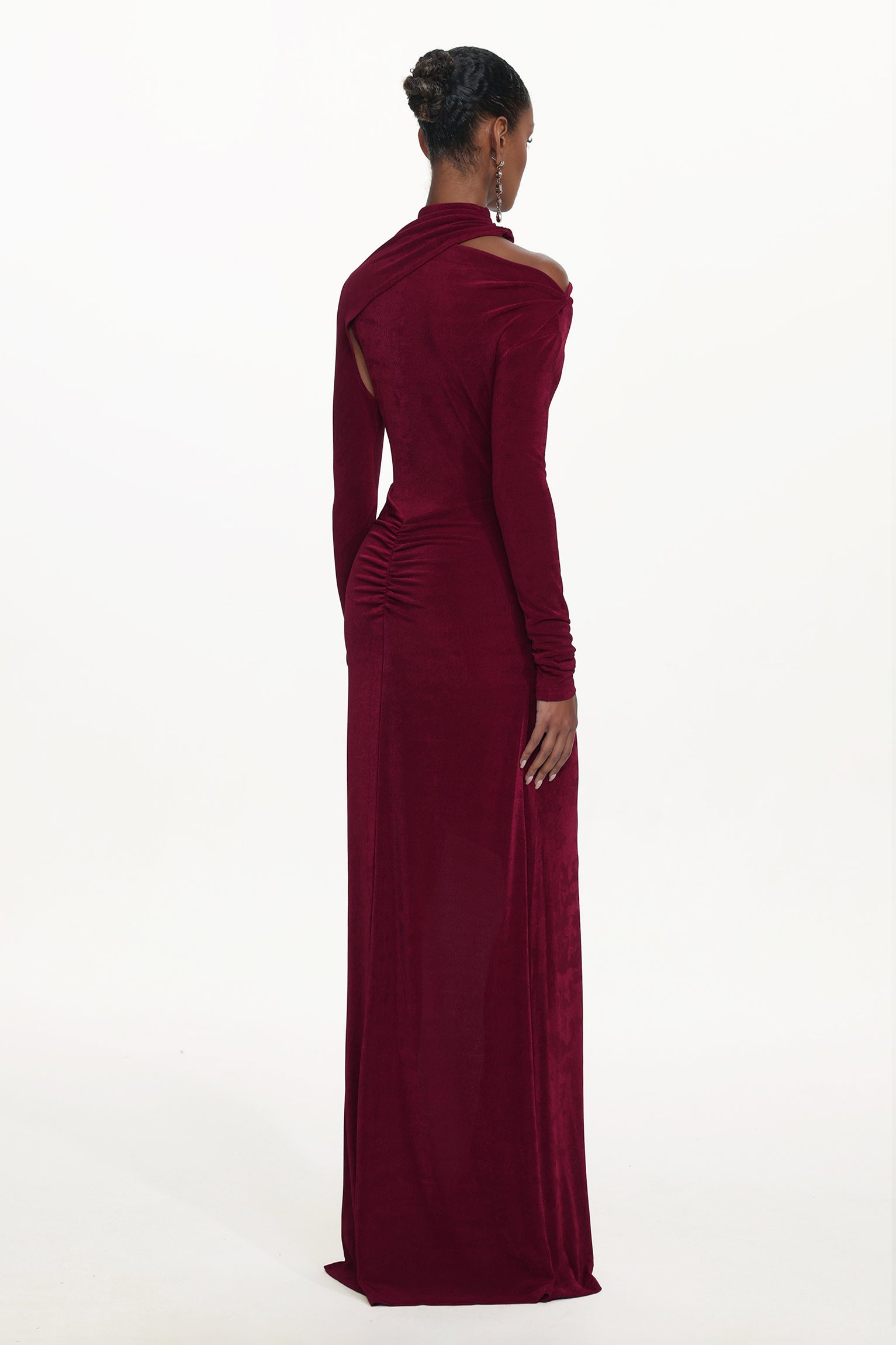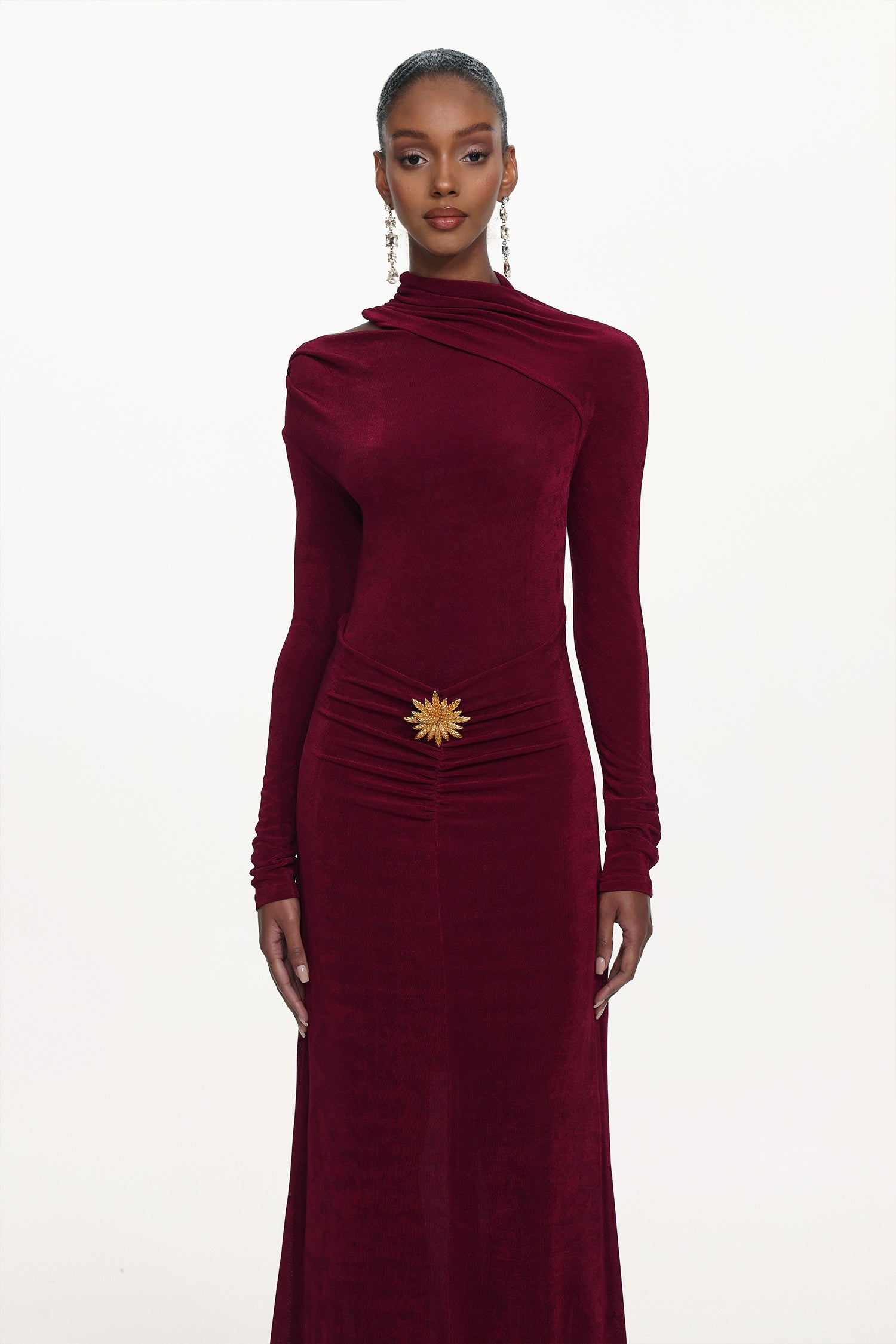Faithe Romantic Contour Long Sleeve Ruched Knit Maxi Dress