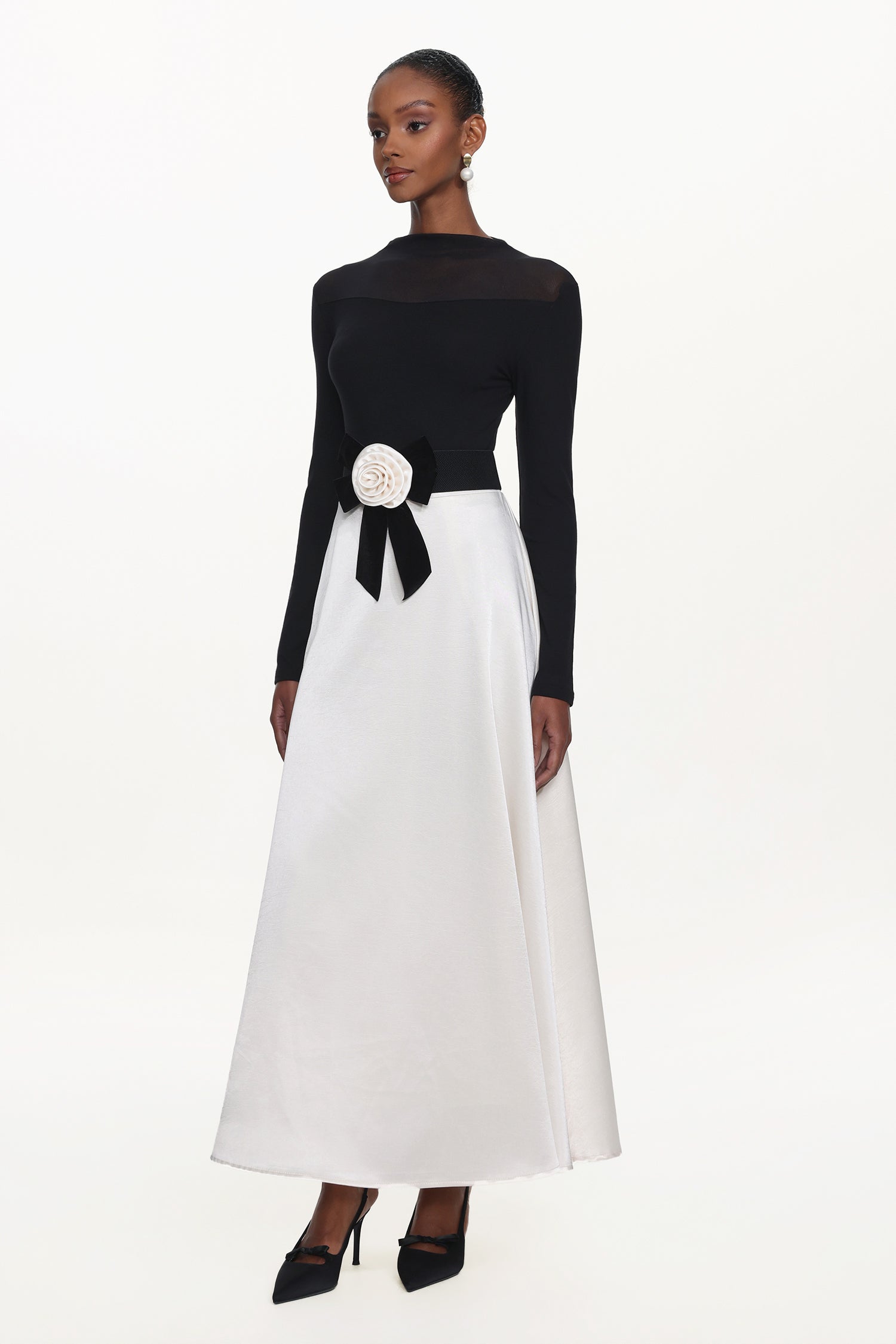 Heloise Elegant Contour Long Sleeve Contrast Floral Maxi Dress
