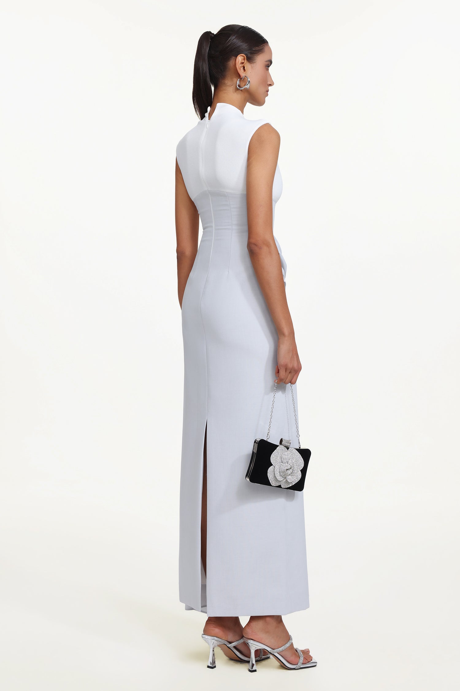 Kolari Elegant Contour High Neck Sleeveless Drape Metal Buckle Maxi Dress