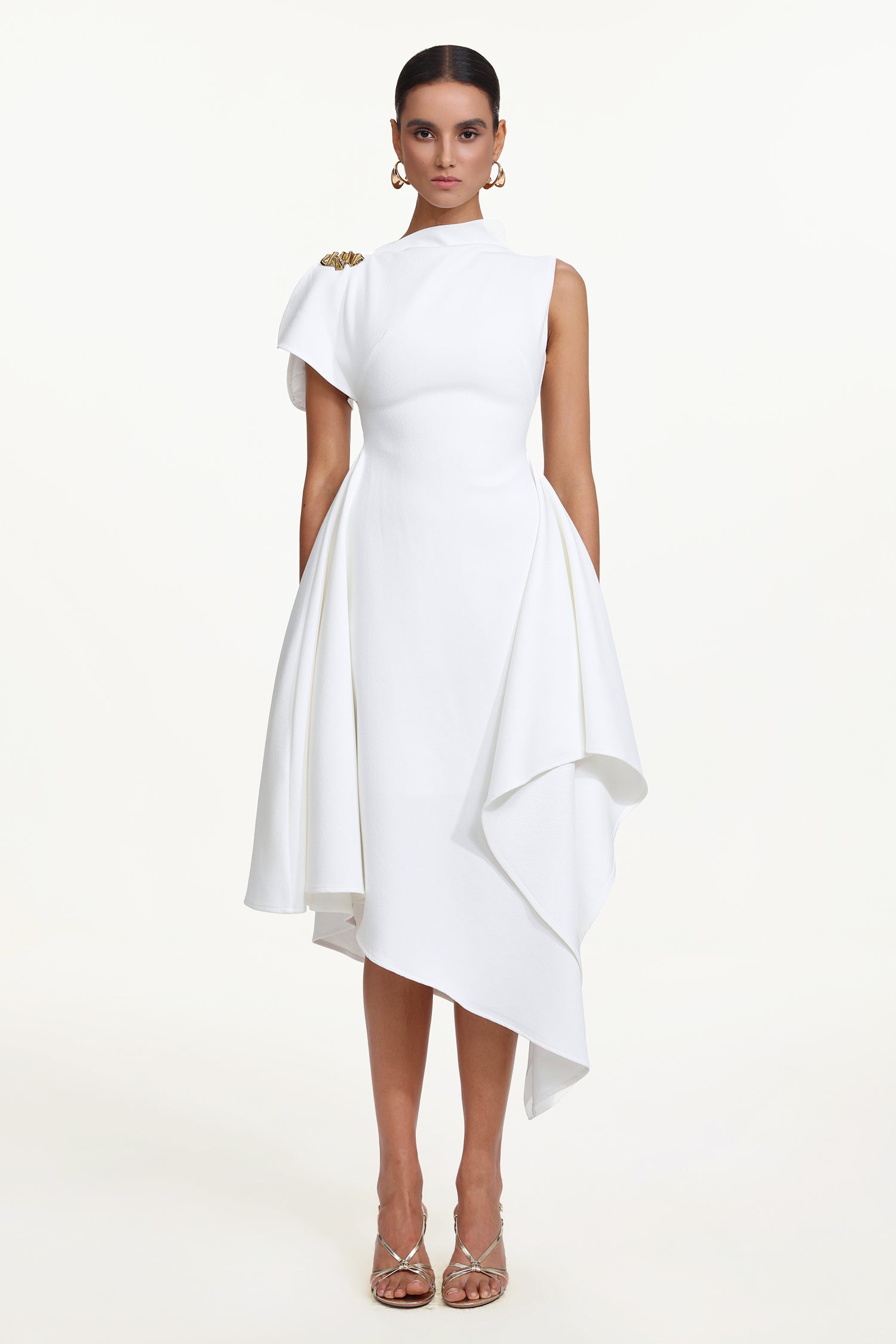 Weren Elegant Contour High Neck Asymmetric Maxi Dress