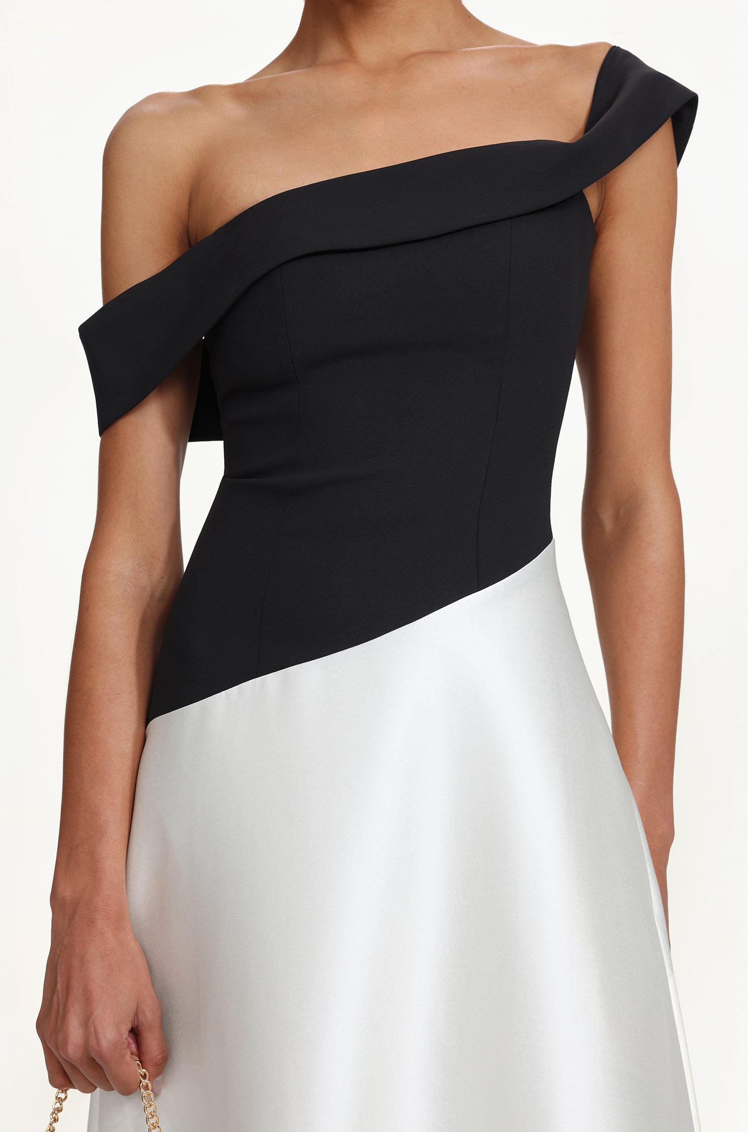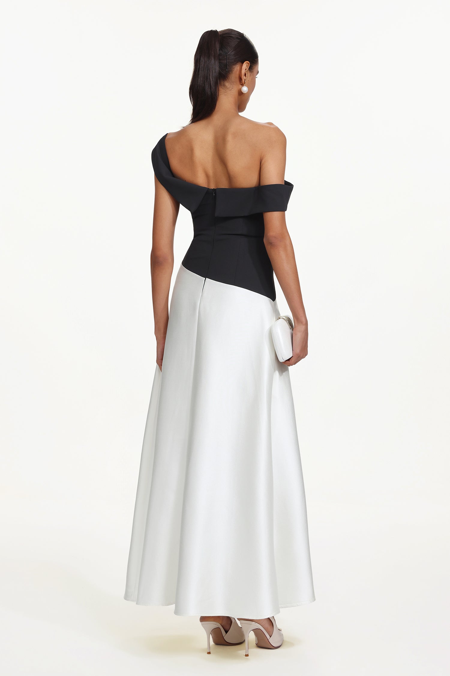 Xavier Elegant Tailored Off Shoulder Contrast Maxi Dress