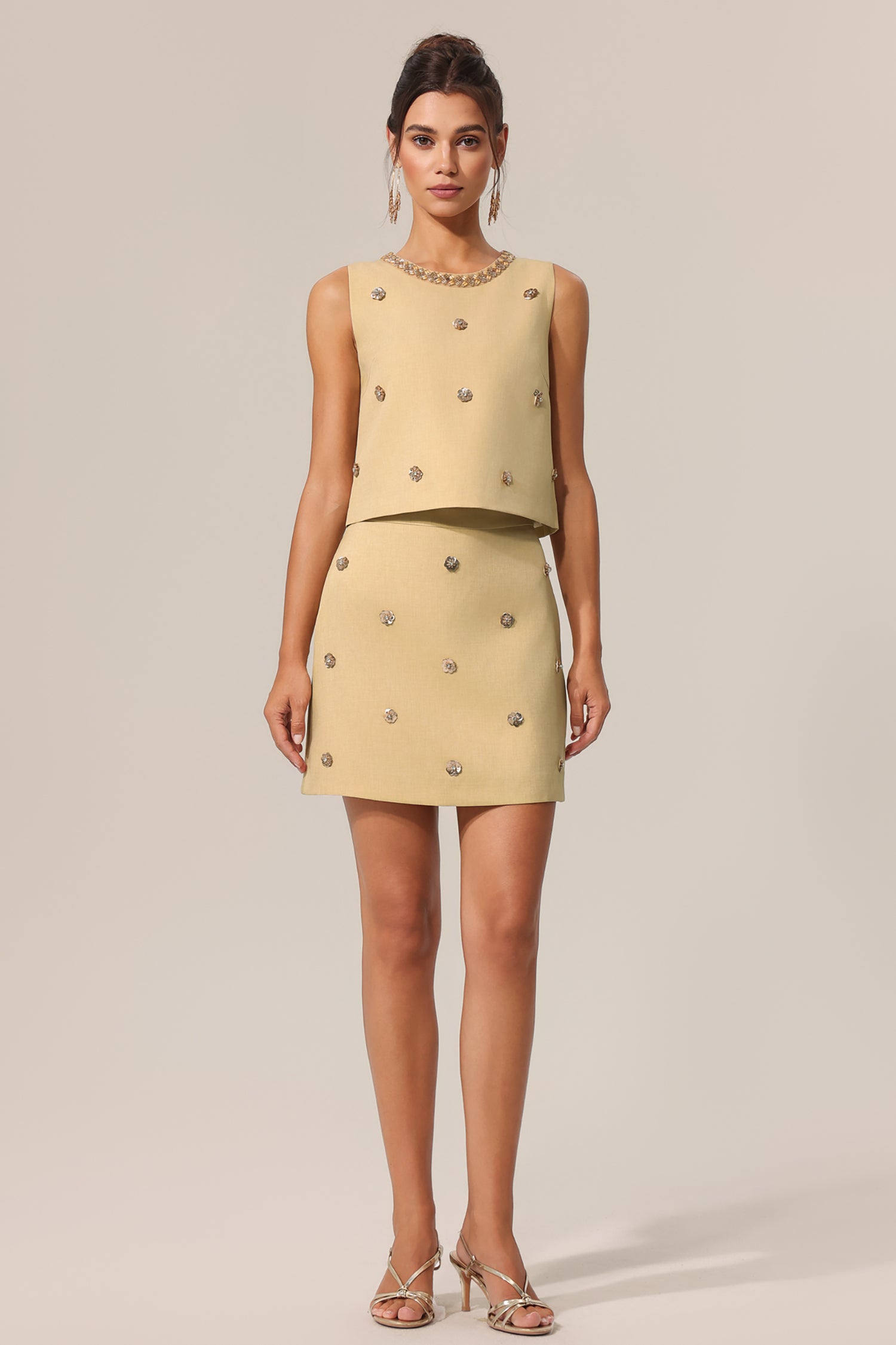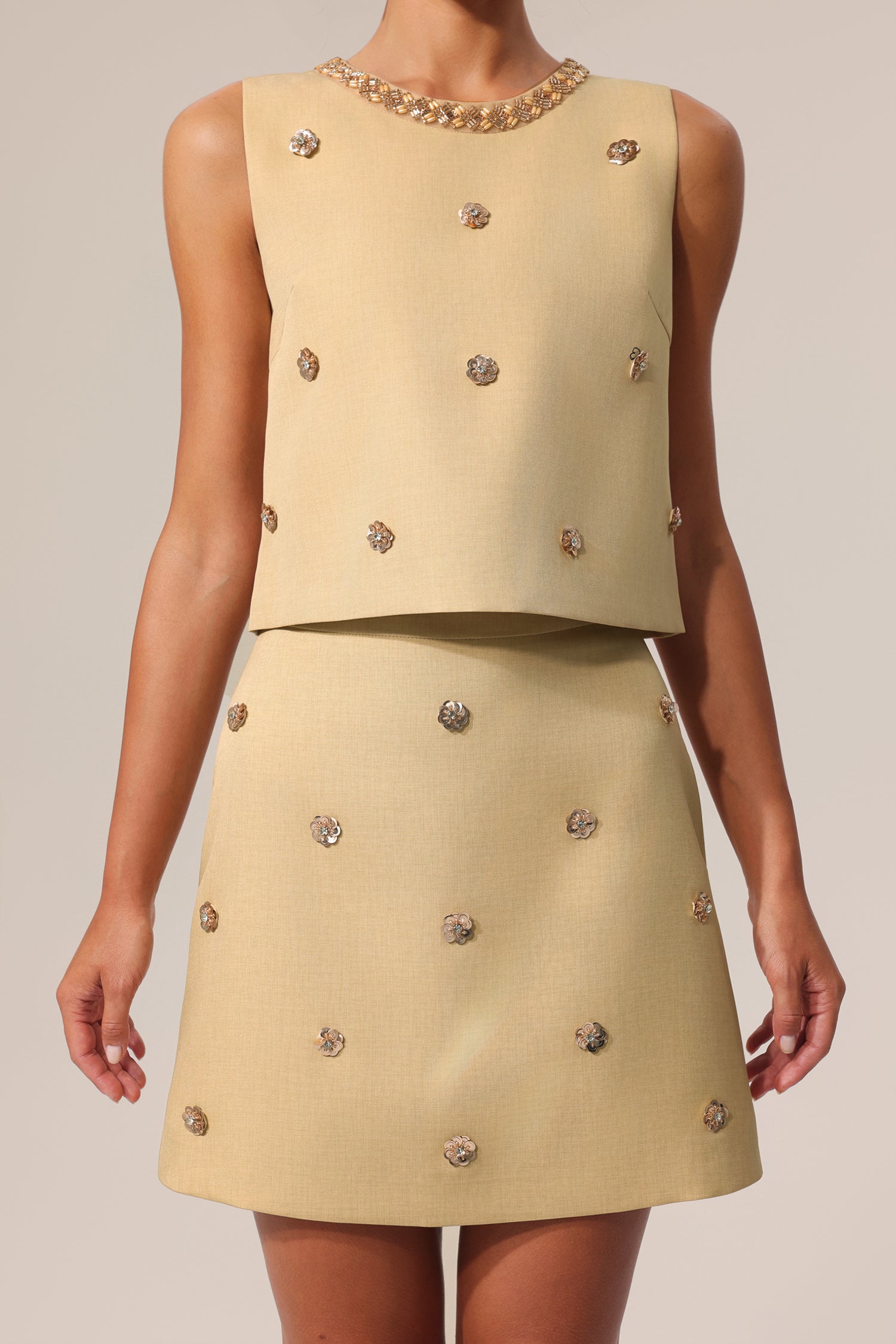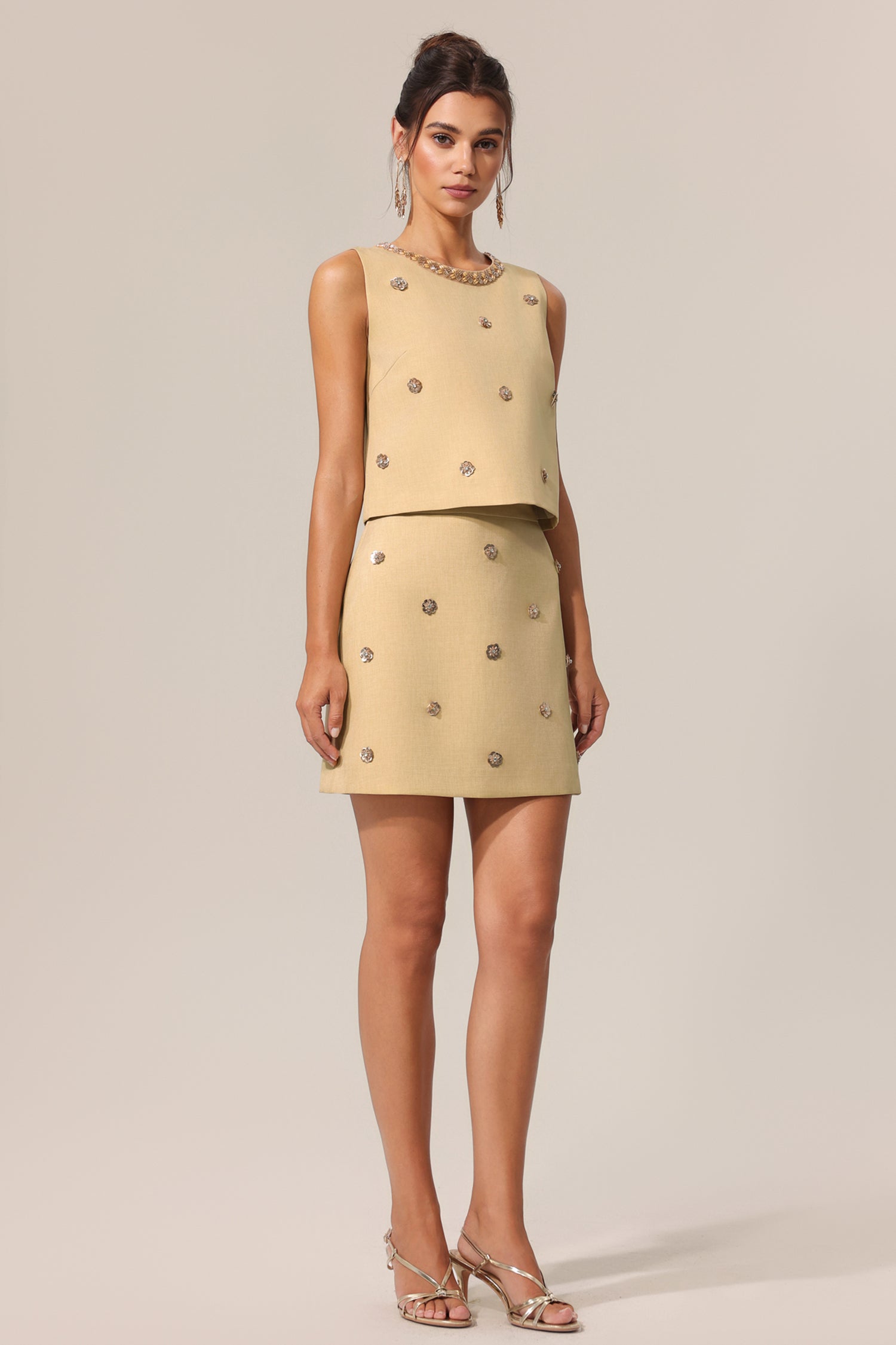 Dorothy Round Neck Sleeveless equin Flowers Top And Skirt Two-Piece Set