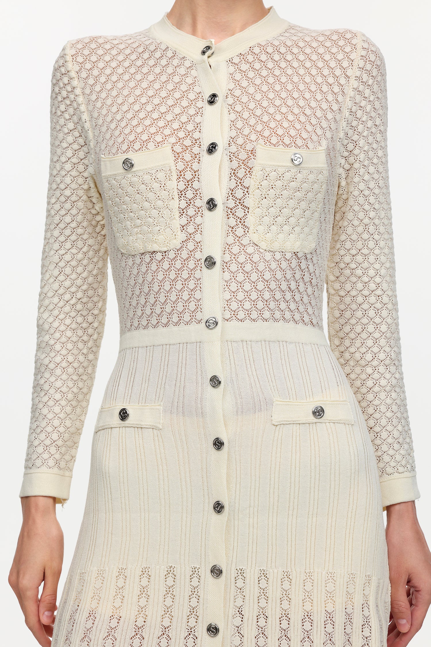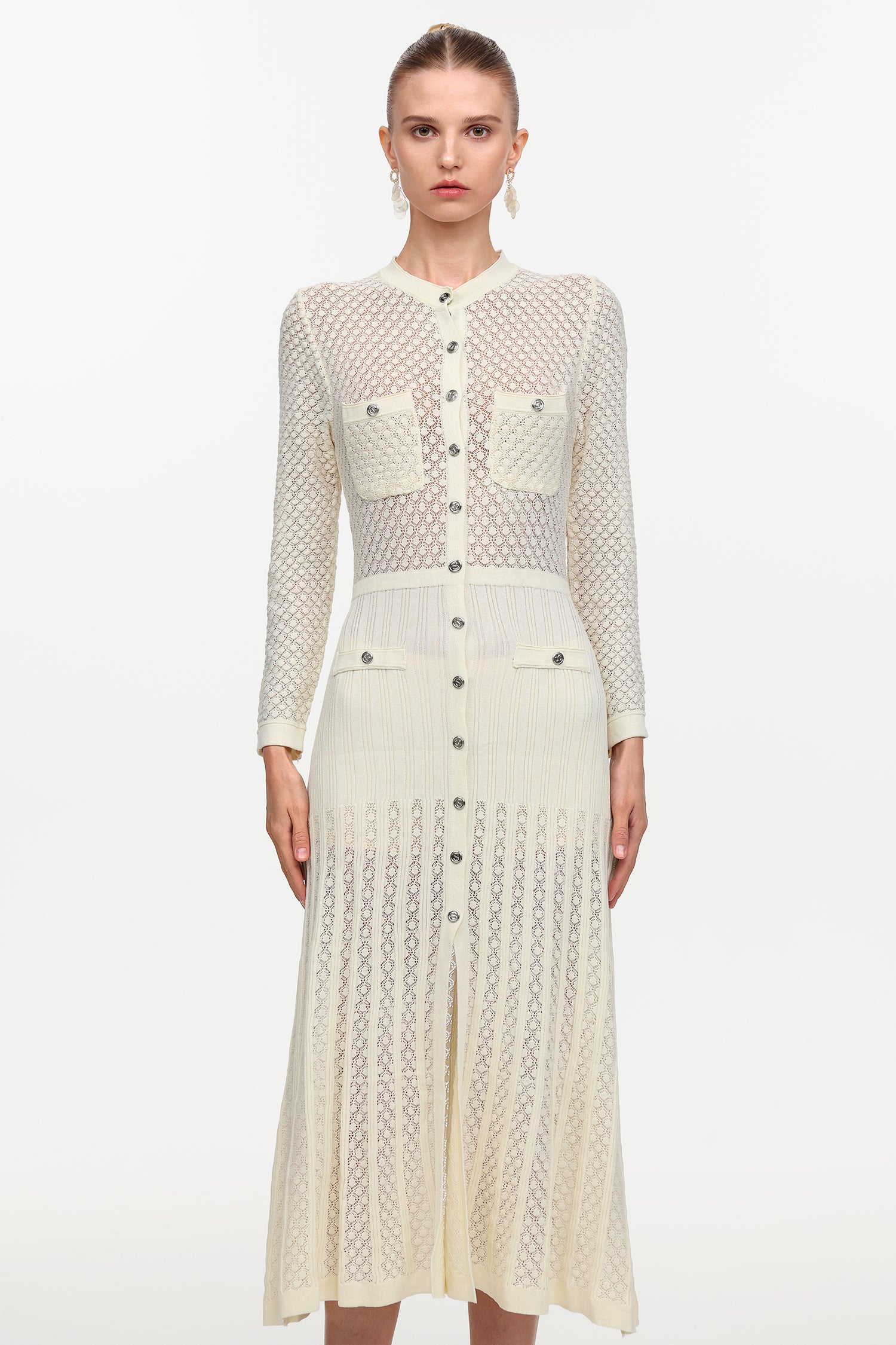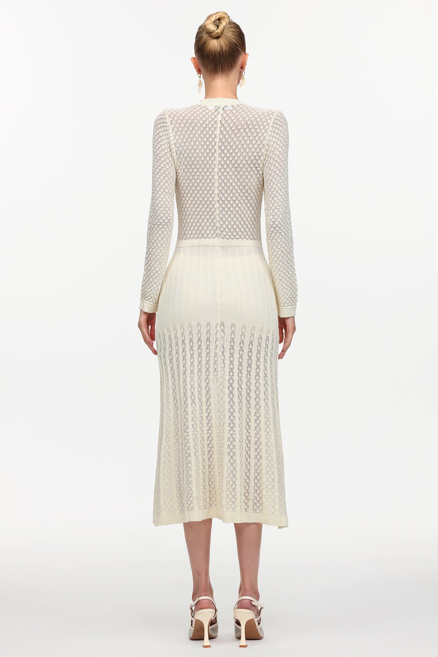 Klore Elegant Contour Round Neck Long Sleeve Knit Maxi Dress