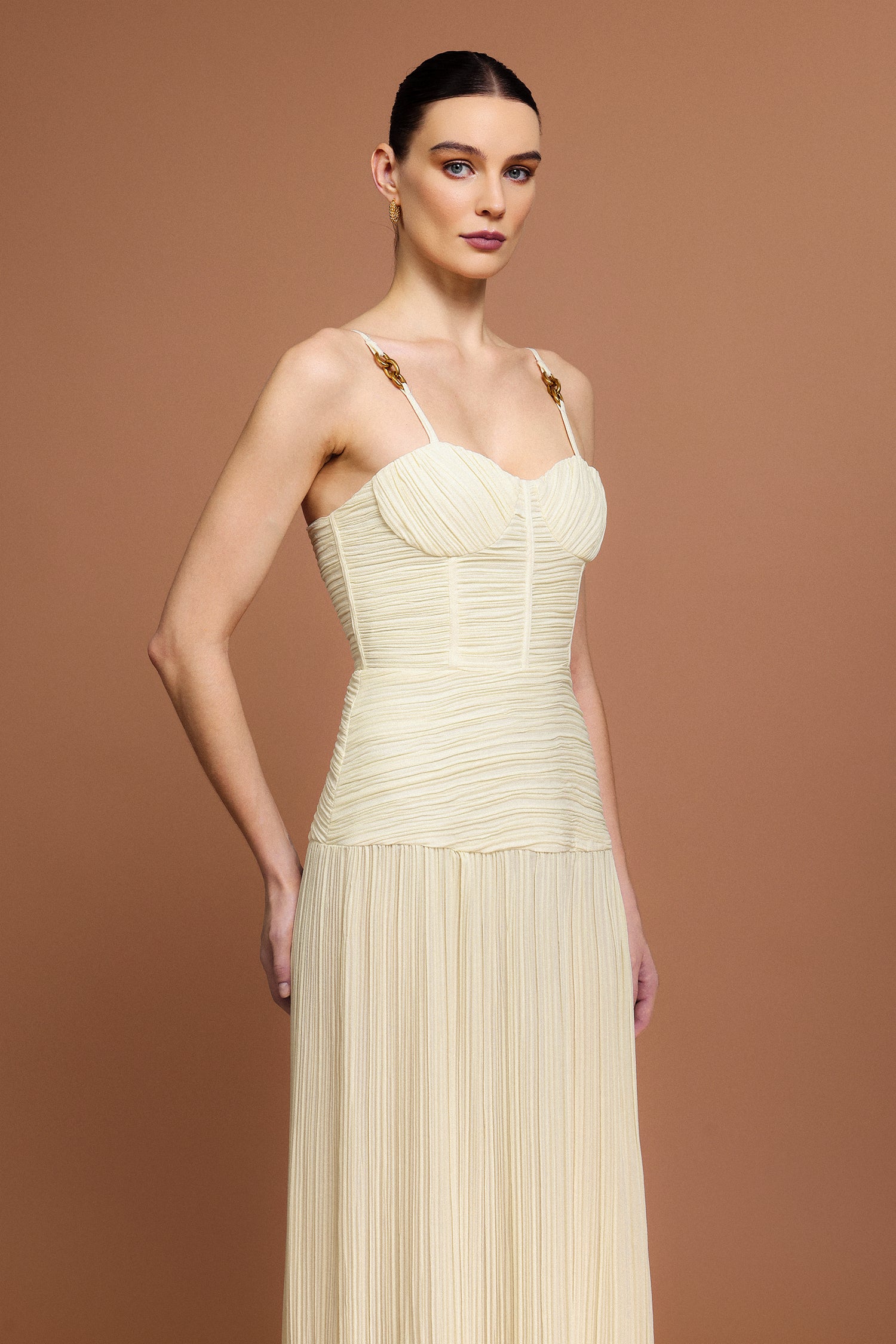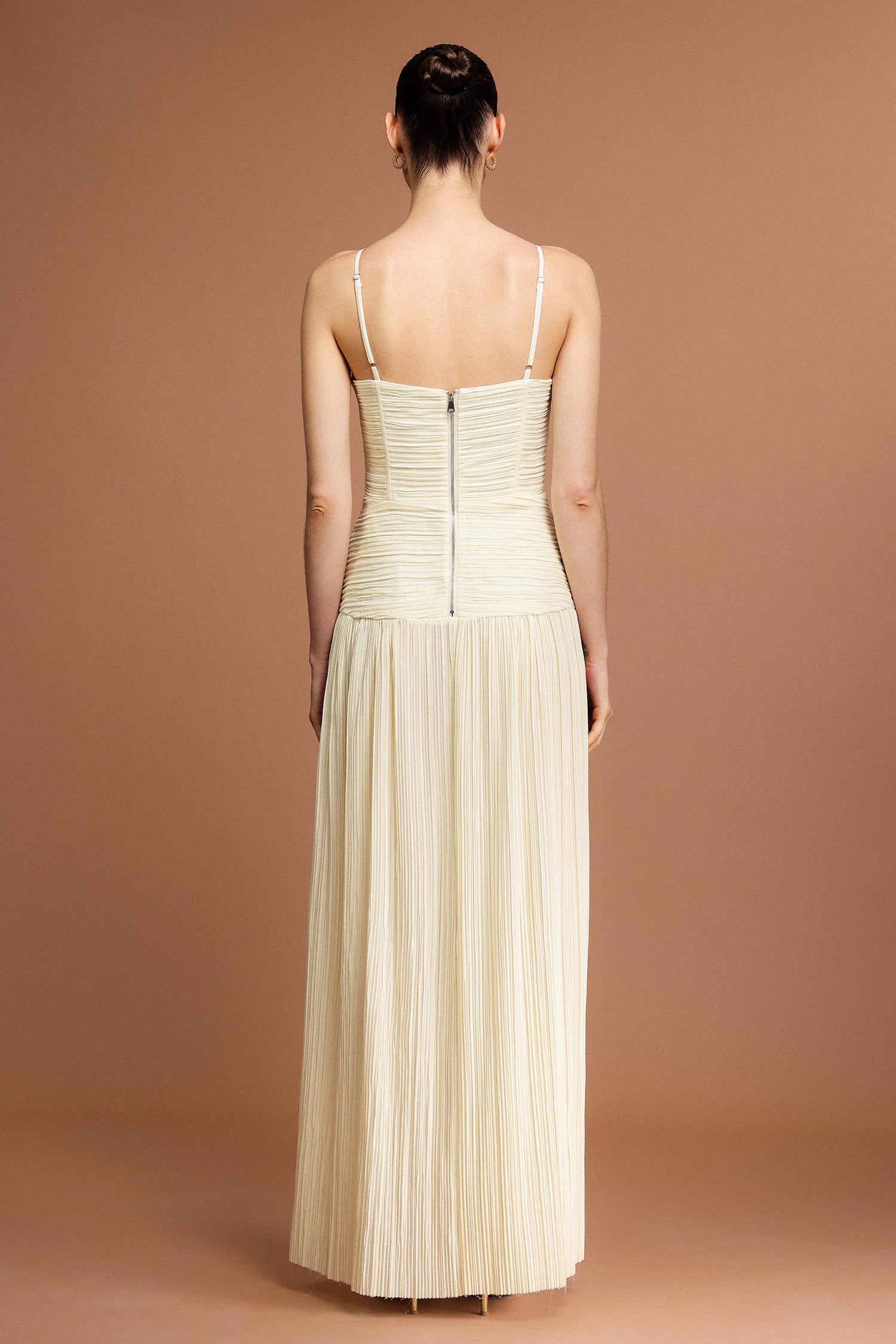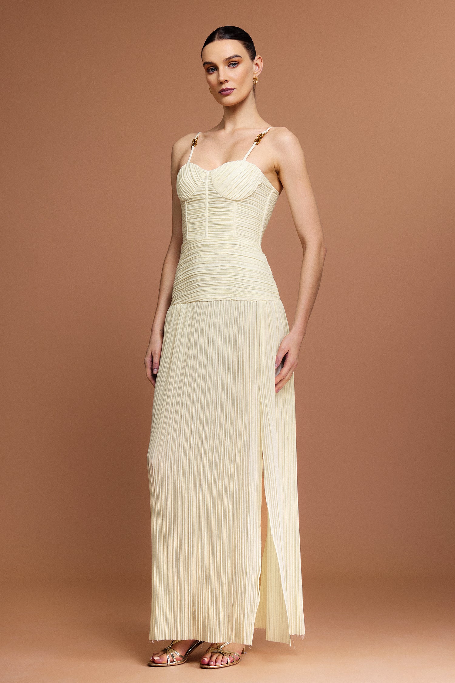 Serena Halter Fishbone Folds Slit Maxi Dress